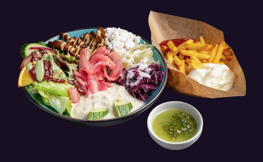 Read moreBesonders hervorzuheben ist die große Auswahl an eher ungewöhnlichen Saucen, die individuell kombiniert und auch separat bestellt werden können. Zusätzlich lassen sich Extras wie veganer Feta oder Ananas hinzufügen, was viel Spielraum für eigene Vorlieben lässt. Bestellt wird bequem per Smartphone direkt am Platz. Das Personal war freundlich, die Atmosphäre entspannt. Insgesamt ein stimmiges Konzept, das man gut weiterempfehlen kann.