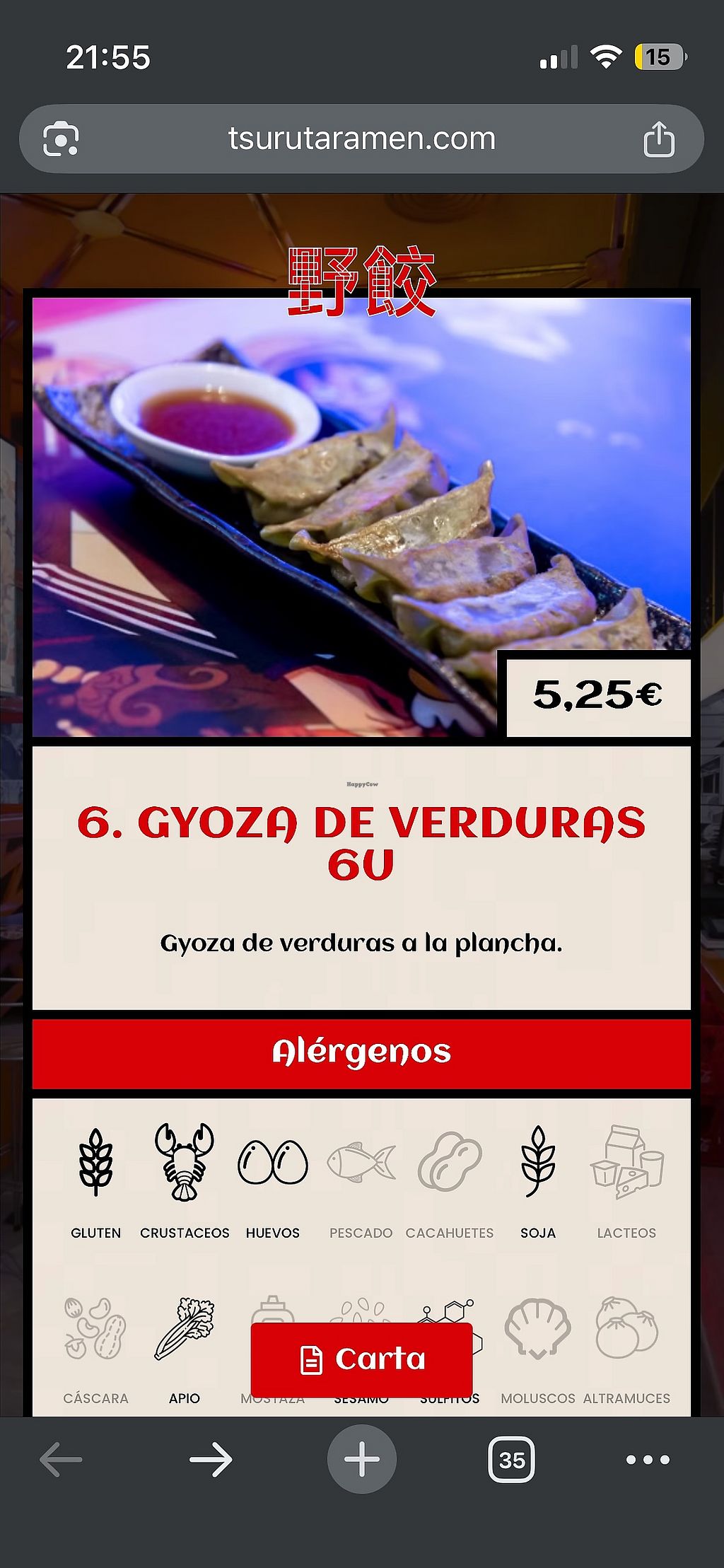 Curry vegetal,te viene con una sopa y dos rollos vegetales.