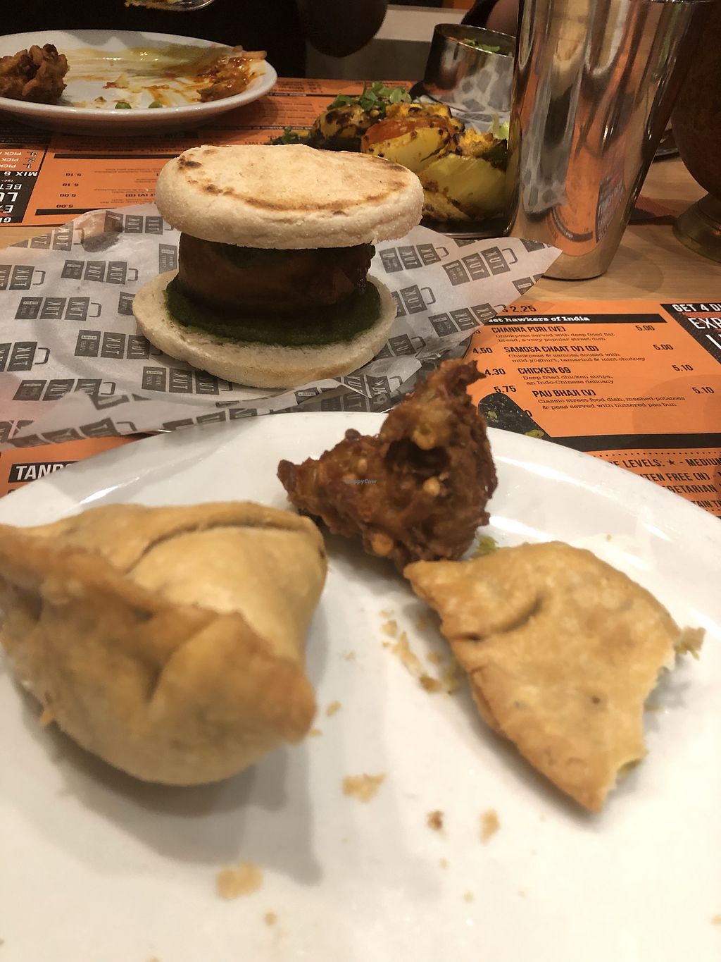 Serves meat, vegan options available. Indian street food style restaurant with a number of marked vegan items on the menu. Has dhal, chickpeas, pakoras, and a potato fritter burger to name a few. The menu is accessible and the street food atmosphere encourages ordering several of the dishes which come in smaller portions in separate pans and bowls. Has another branch in Edinburgh. Reported closed January 2023.