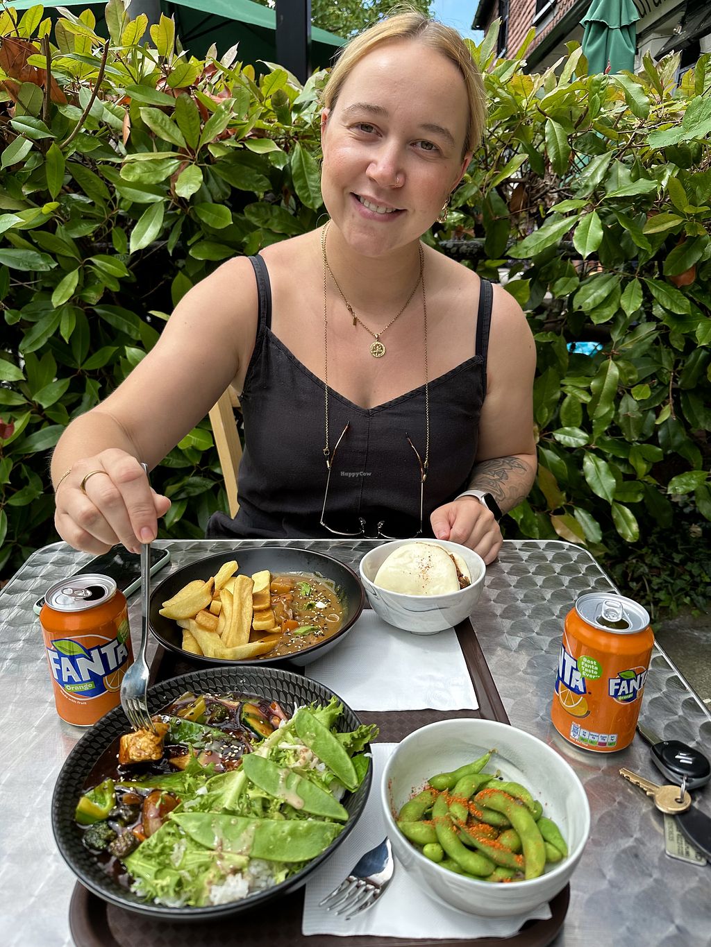 Serves meat, vegan options available. Asian fusion restaurant open for takeaway and delivery. Vegan items include sweet & sour vegetables, rice & noodle dishes, and bao buns. Open Mon-Sat 16:00-22:30, Sun 16:00-22:00.