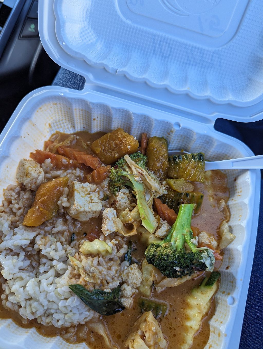 I had sweet potato curry with tofu and it was tasty with lots of vegetables.