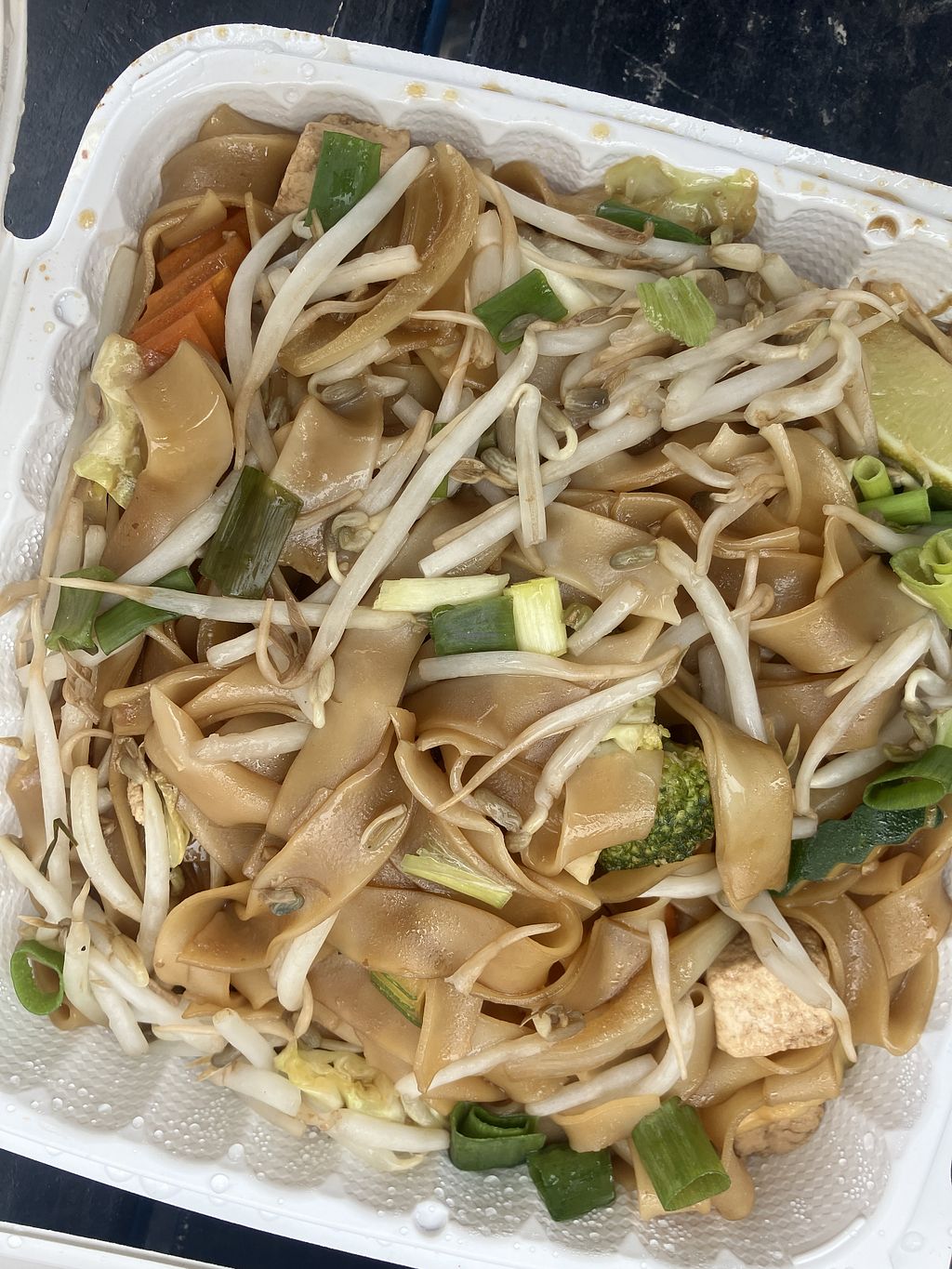The truck was run efficiently with a smile. They totally understand vegan and claim that they DO NOT use fish sauce. Such a pleasant relief! Some dishes have egg, and are clearly labeled. Just tell them "no egg." Almost everything is made to order so it's easy to modify most everything. We ordered a number of dishes: Pad See Yu Noodles, Crazy (Drunken) noodles, Panang Curry, Spring Rolls (fried), Pad Thai, and Avocado Summer rolls (wrapped in rice paper). Everything was delicious. Great price and portion size. Will definitely go back.