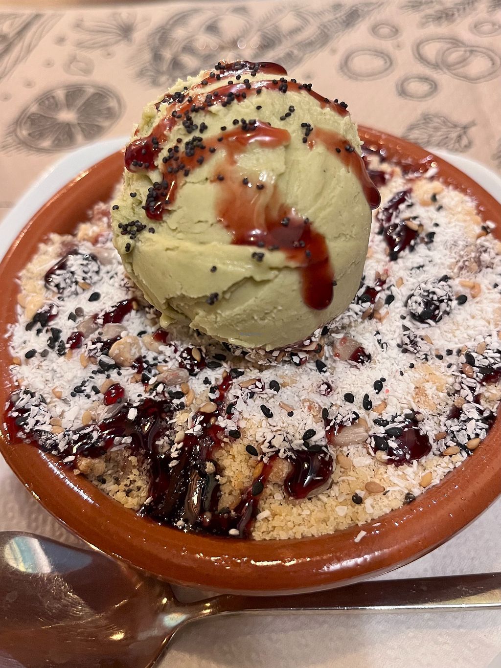 Apple Crumb with Pistachio Ice Cream