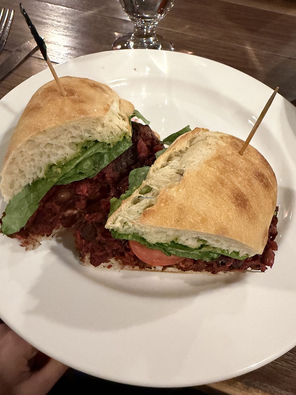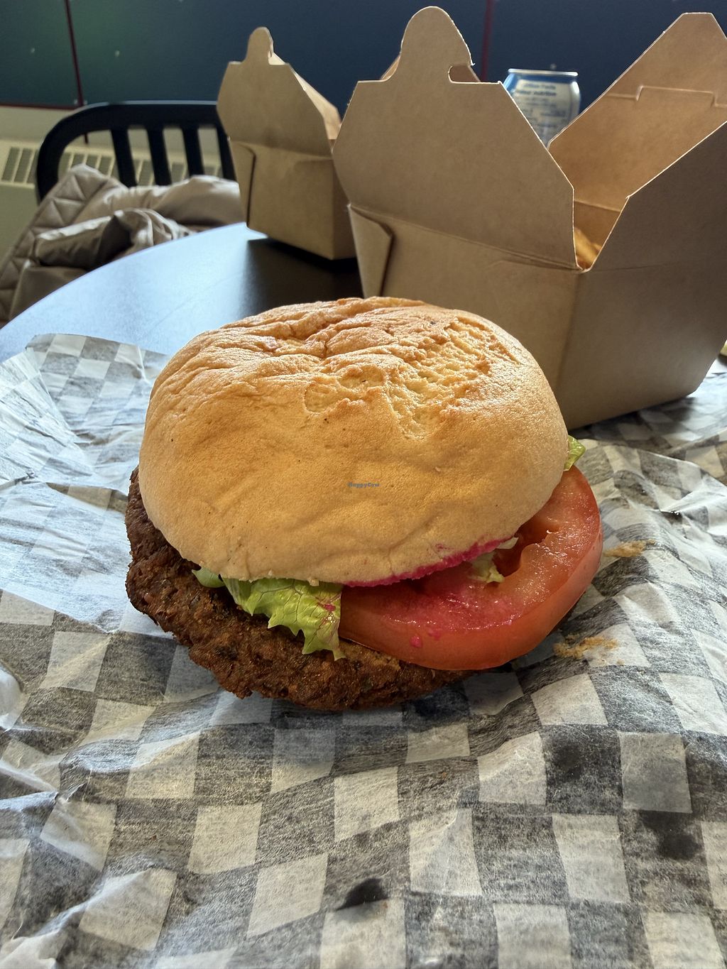 Delicious veggie burger from sister restaurant across the street (Ptar…