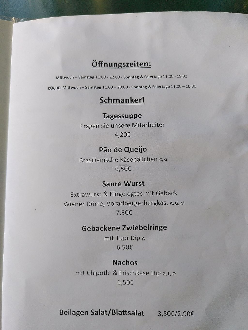 Serves meat, vegan options available. Austrian restaurant offering a few clearly labeled vegan choices including breaded eggplant, baked onion rings with housemade aioli, cucumber soup, house salad, daily specials and a weekly vegan dish. Open Wed-Sat 11:00-22:00, Sun 11:00-18:00. Closed Mon & Tue.