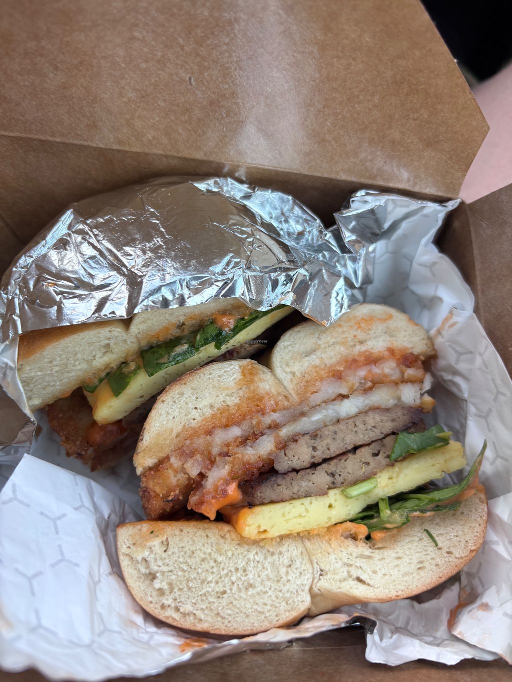 Back for breakfast. The breakfast sandwich on an English muffin with sausage and chipotle mayo was delicious. Added avocado and hash brown. Also tried their veggie lovers omelette with toast. Very tasty. Enjoyed both and looking forward to repeating. One request I will have next time is for a toasty, crispy English muffin. Also came back for the French toast stinks and they were easily the best vegan French toast sticks I have ever had (better than the Tonga toast o look forward to at Disney).
