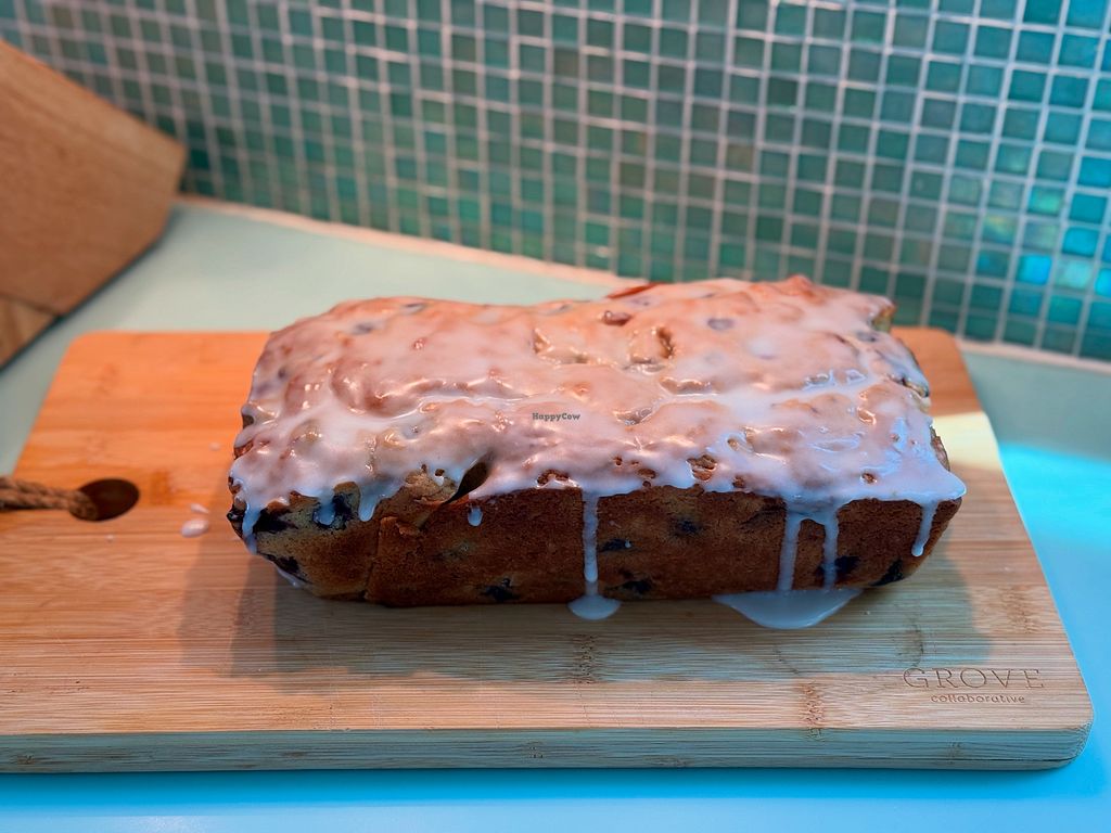 A vegan home bakery offering everyday plant-based baked goods such as muffins, sweet breads, savory breads, and cookies. Items include blueberry lemon loaf, strawberry muffins, Dutch oven breads (plain, green chili and brown sugar cinnamon), and sugar cookies. Delivery and pick up only. Times communicated directly with customer.