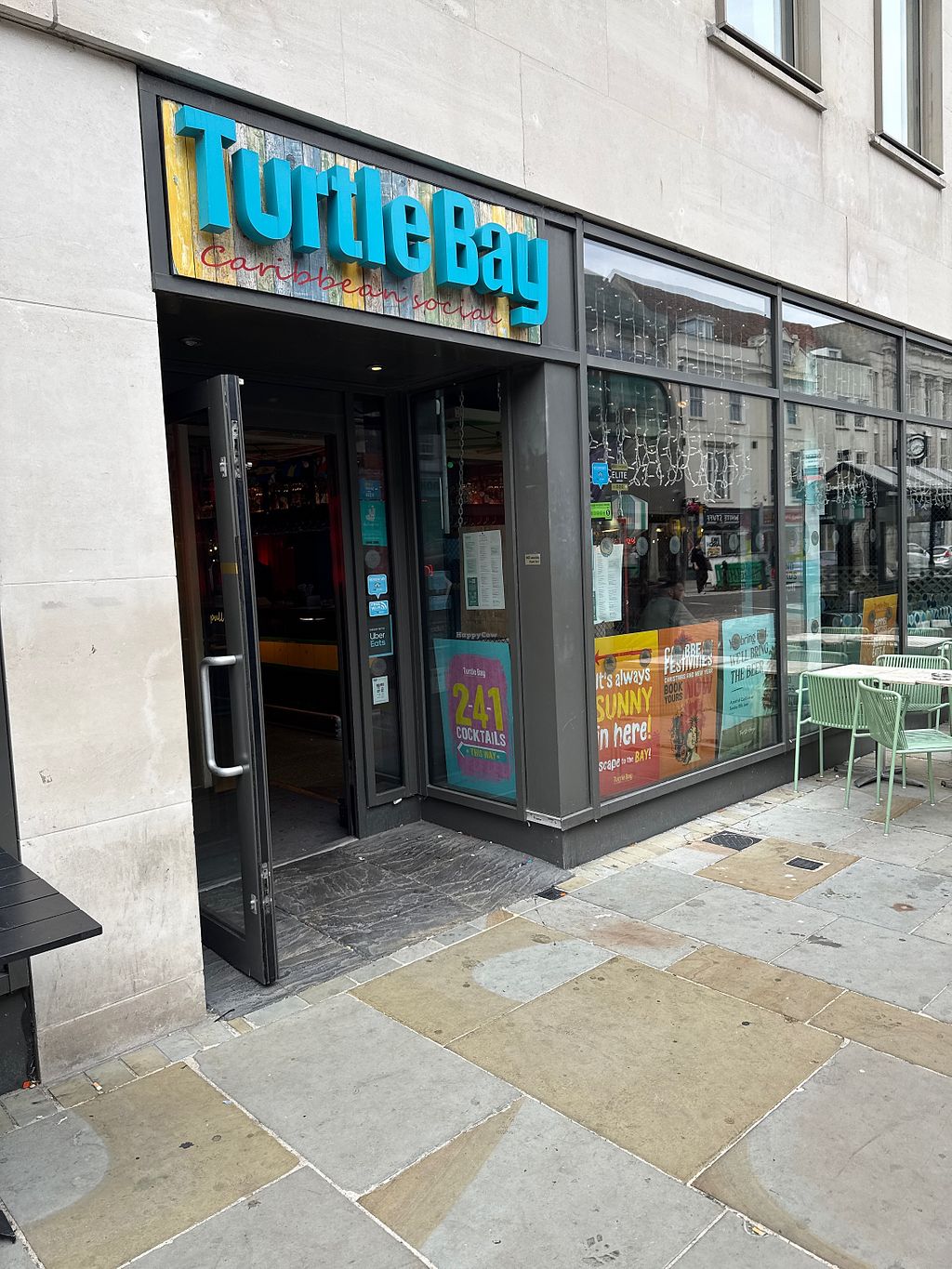Serves meat, vegan options available. UK chain of bar & restaurants inspired by the beach shacks and street vendors of the Caribbean. Regular menu is meat-based but has a separate vegetarian/vegan menu which also lists alcoholic beverages and soft drinks. Examples of vegan food include sweetcorn fritters, kernel burger, pepper-mushroom wrap, chickpea & callaloo curry, and salads. For dessert get vegan salted caramel brownie and chocolate ice cream. Open Mon-Sun 10:00-23:00.