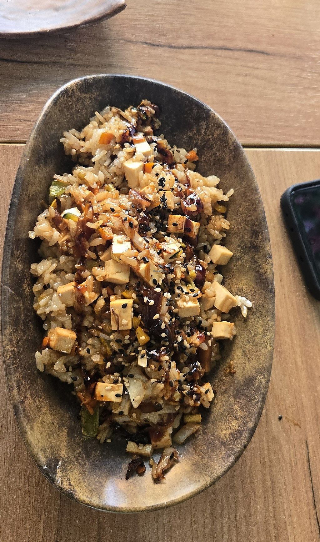 Vengo regularmente: hay variedad de platos veganos, y realmente excelentes (invitados internacionales franceses muy gourmets decretaron que el udon vegano era el mejor jamás probado). El secreto: un chef de muy buen nivel, altamente especializado, que ha decidido crear su propio restaurante. Servicio muy agradable. Baja frecuentación por la competencia de tapas alrededor, pero los superan con creces en calidad, si te gusta la gastronomía asiática creativa.
