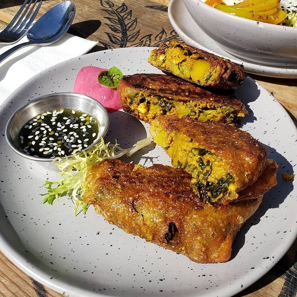 This restaurant really exceeded our expectations!! We had the butter chicken, greens dish, and mushroom wings. Loved it all - the sauces are so complex and colorful as well. Each dish came with a roti bread that was fantastic!