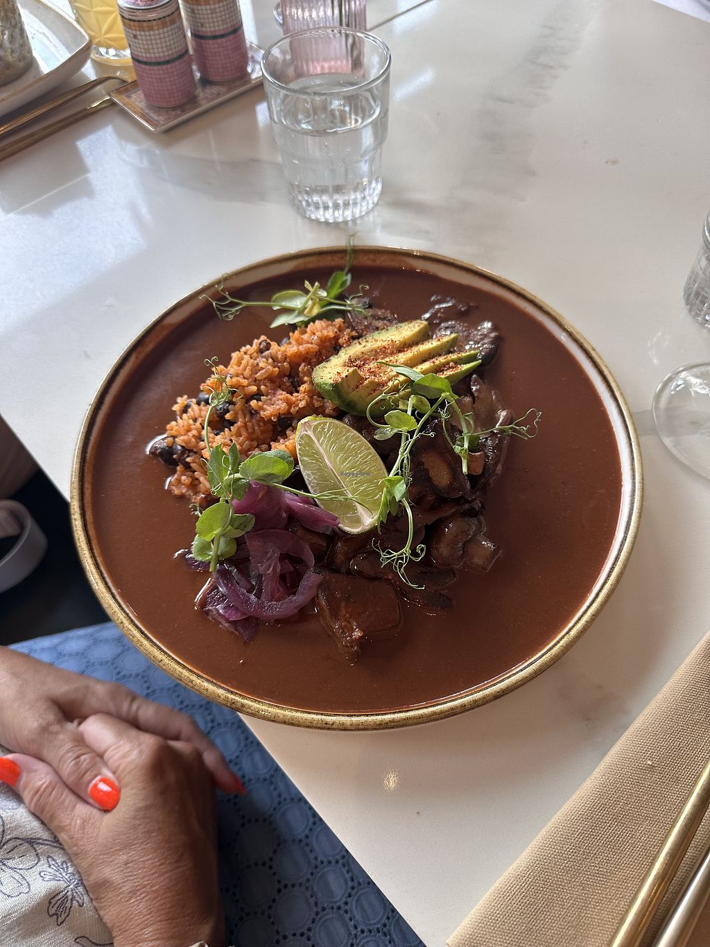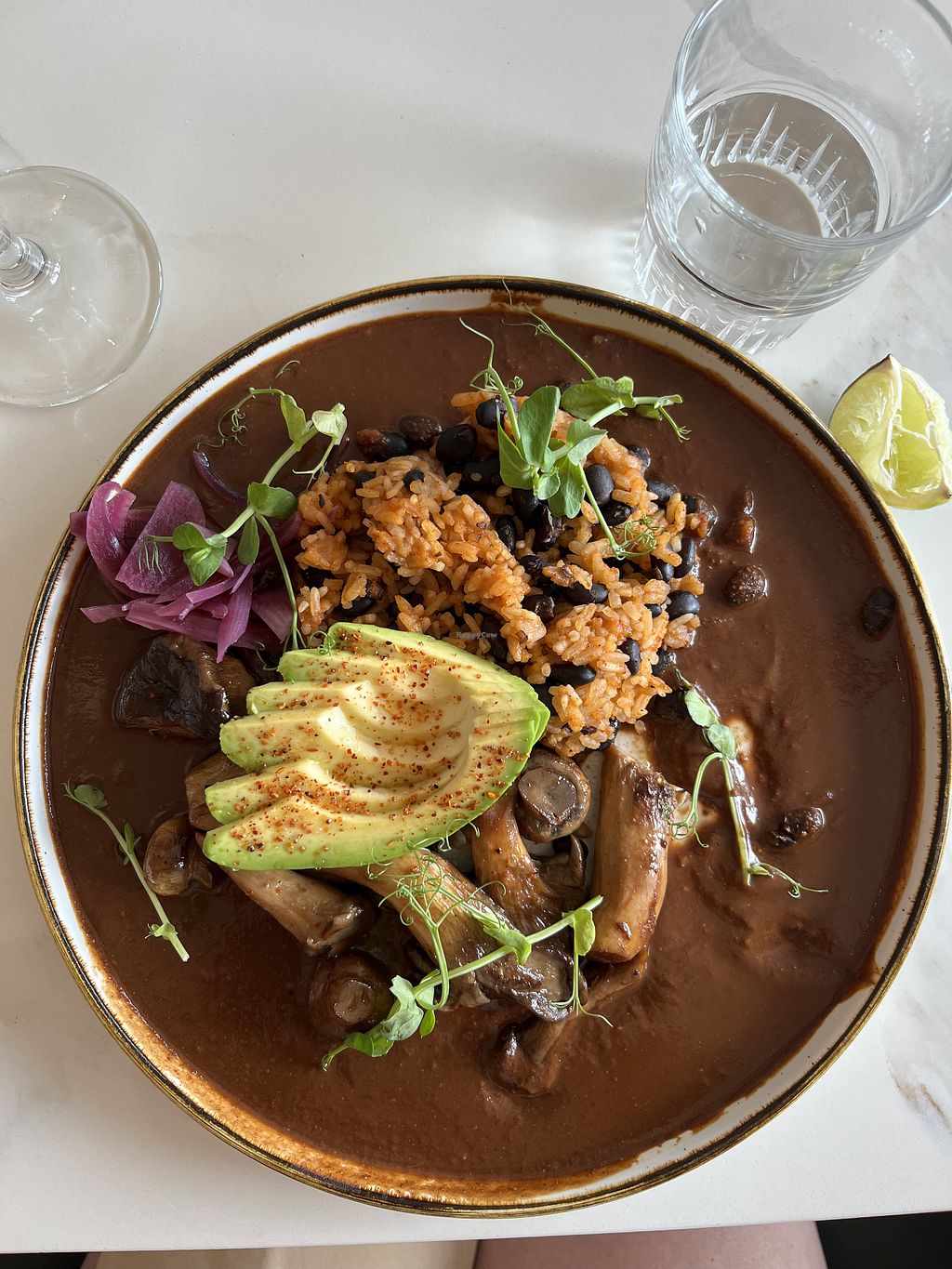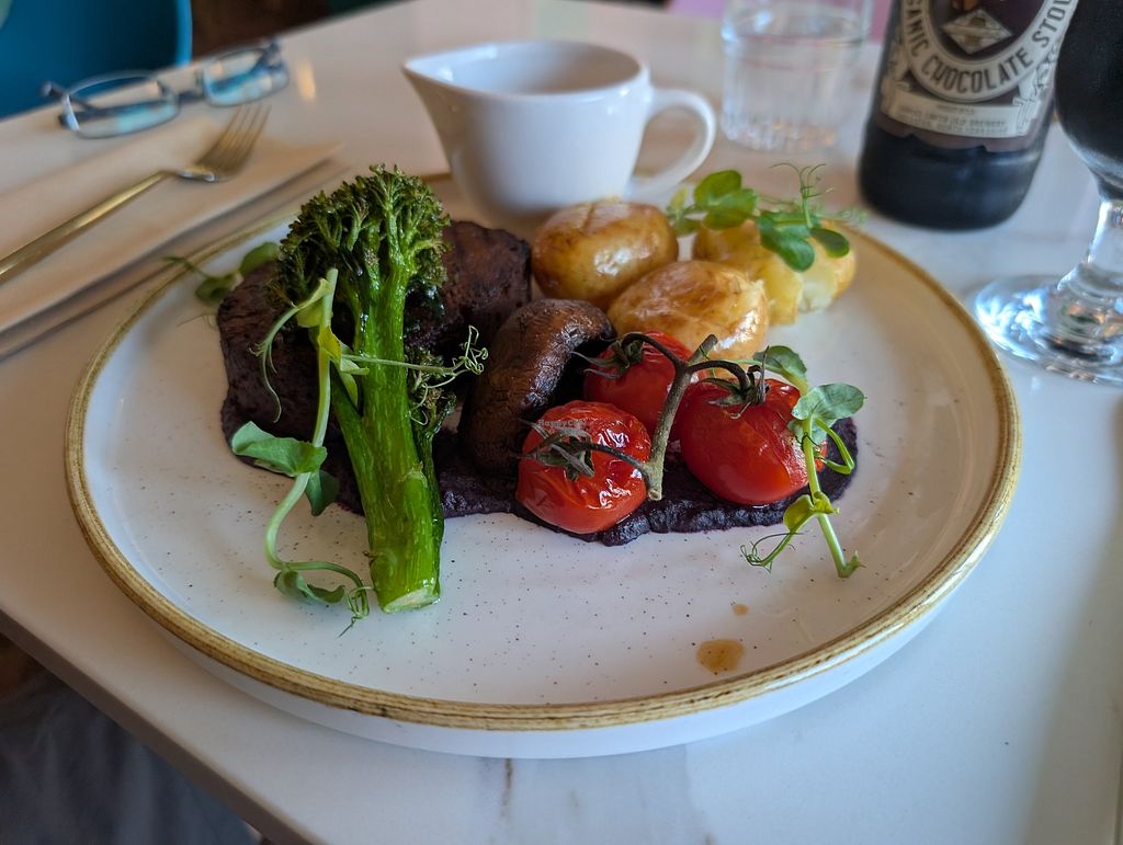 Caeser salad, oyster mushroom scallops, asparagus, macaroni cheese, sc…
