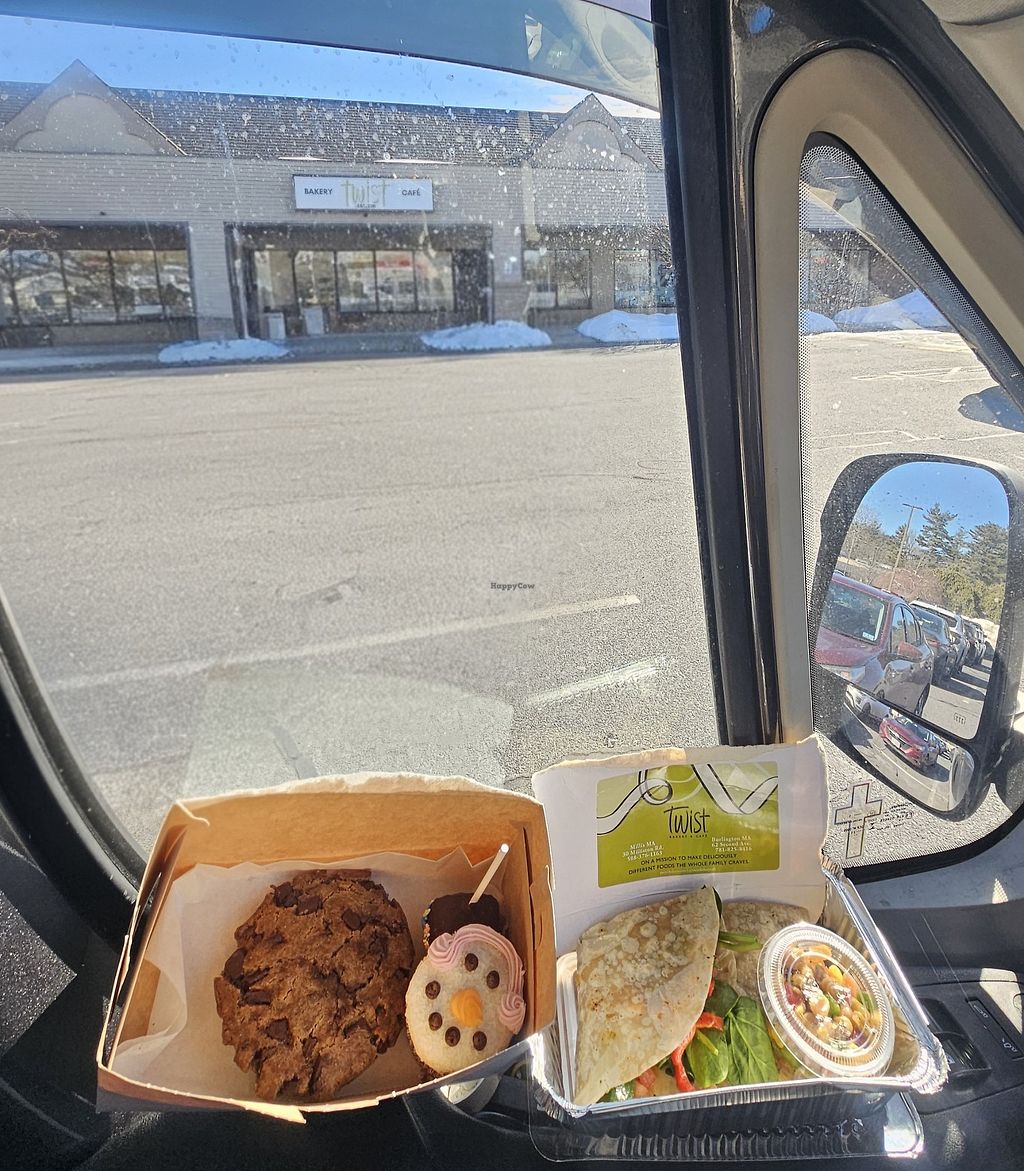 Twist is a totally gluten free restaurant with delicious baked foods that are on display for eat in or take out. Everything is fresh and marked with colored dots whether it is vegan, has egg, nuts, etc.