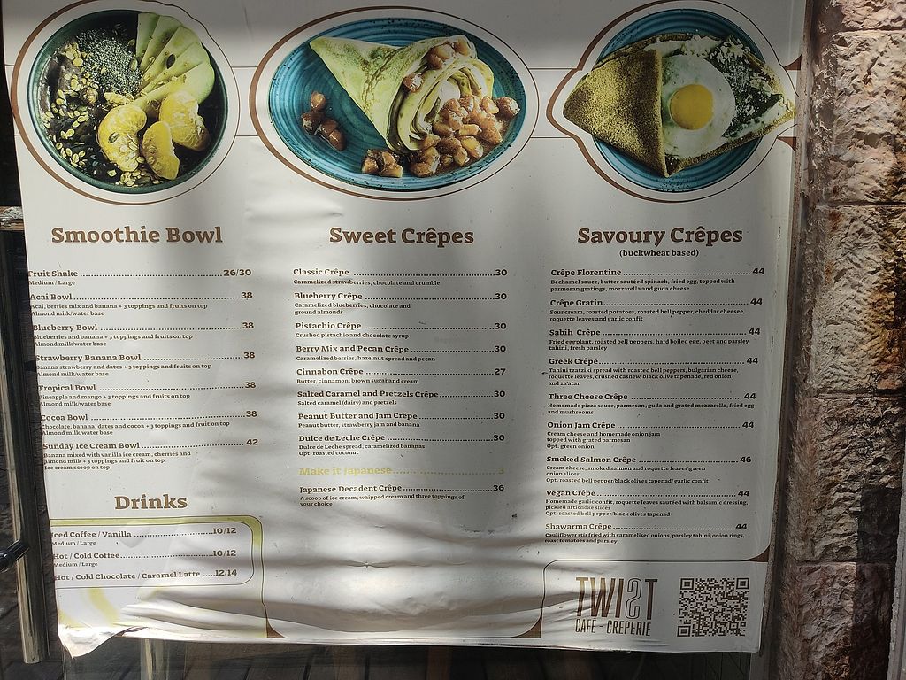 The place has a loooot of options for vegetarians and couple of options for vegans. I am personally not a big fan of aubergines but the crepe with aubergine was tasty, even for me. The sweet crepes are also good! My dream is to try the artichoke one, as for the two times i've visited the place it wasn't available...
