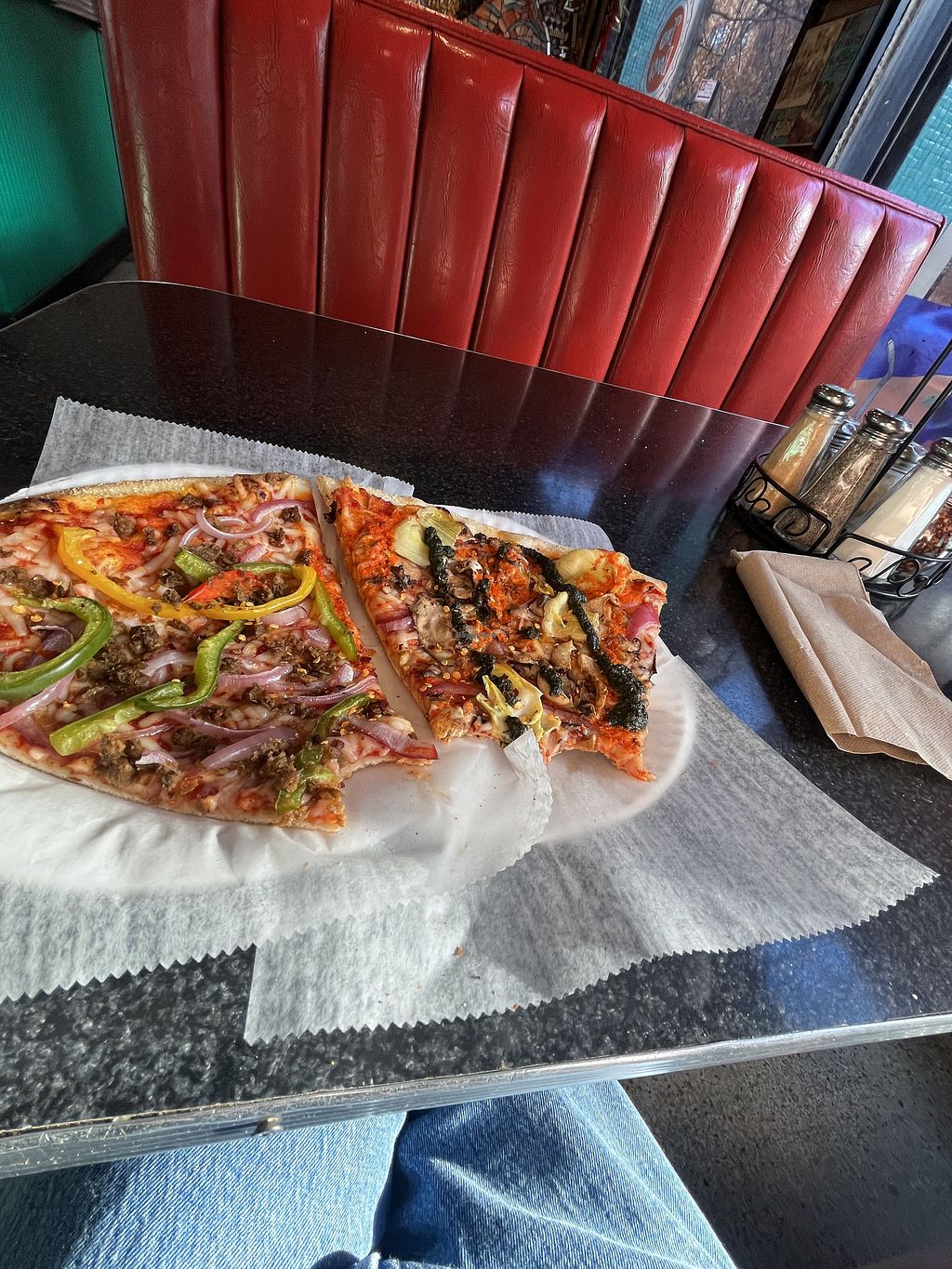 18” Large vegan pizza ”V for Vegan”. Enough for two and leftovers. Yum…