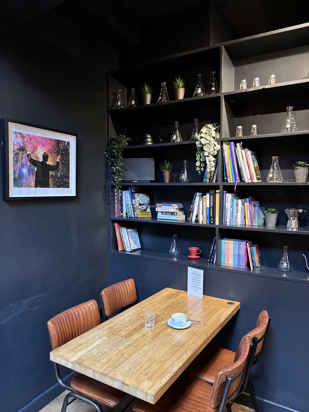 I visited here for the first time recently. Instantly impressed by the outside window and the art. The inside was just as impressive with amazing art work and decor. Ordered an oat milk flat white which was delicious. 2 girls that served me were extremely friendly and warm. They had a lot of time for me and we had a laugh. I can’t wait to visit again and maybe try some cake this time!