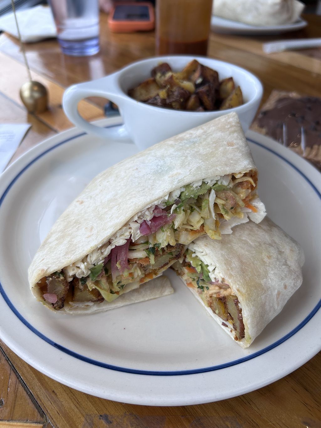 We ordered the loaded breakfast tortuga and chili Quiles. Huge portions. My chubby non vegan hubby loves it here. The people are amazing; chill vibe; coffee and the best vegan food in town.