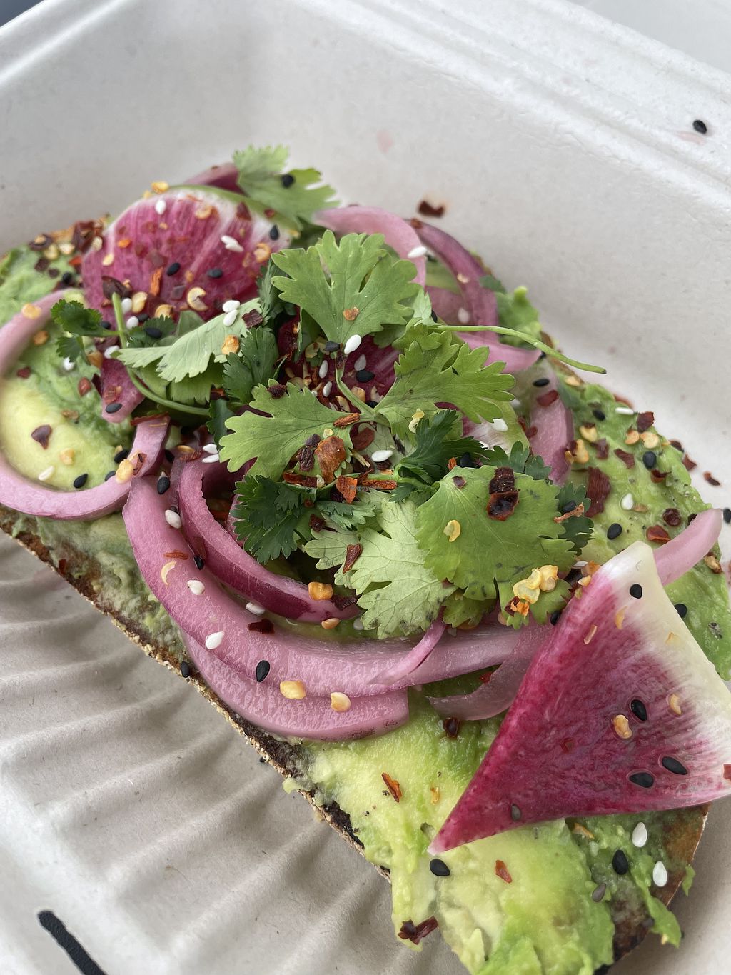 We went here for breakfast and I got the avocado toast and an oat milk chai latte and both were delicious! They have gluten free bread and vegan cheese available upon request as well.