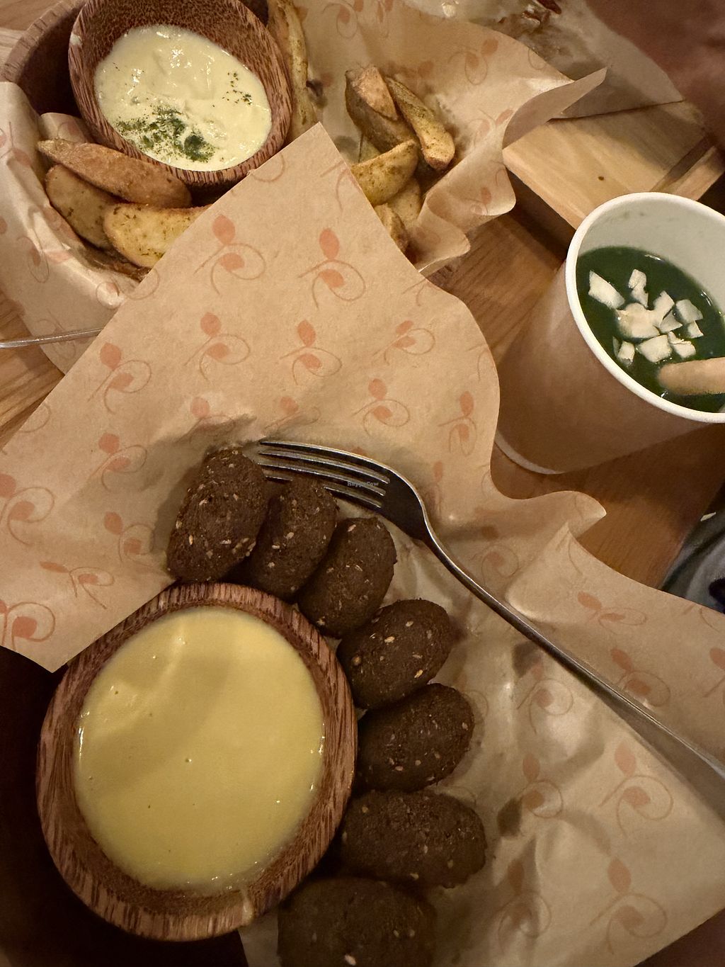 Falafel Salad + half-eaten passionfruit cheesecake😄