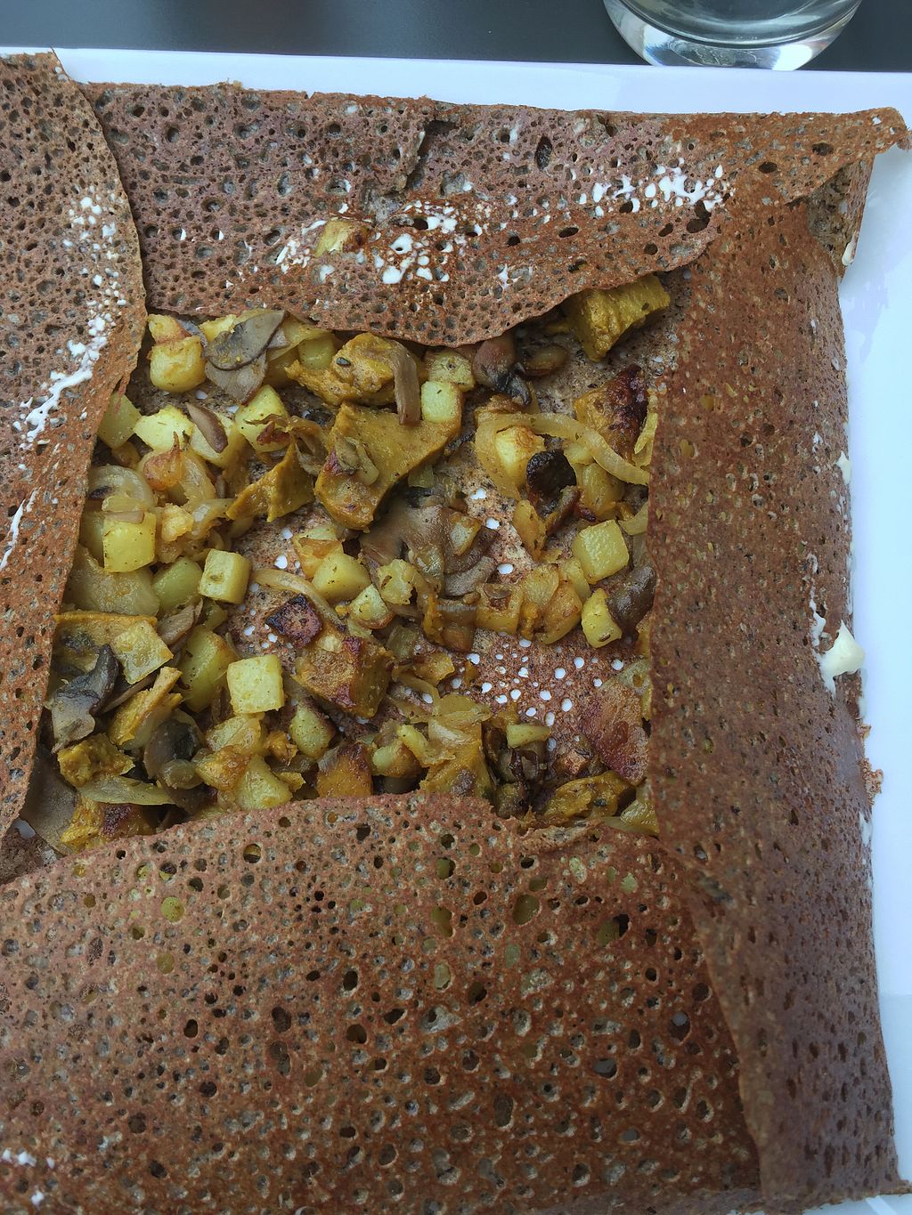 Madras buckwheat pancake (seitan, curry, mushrooms, oignons, potatoes.…