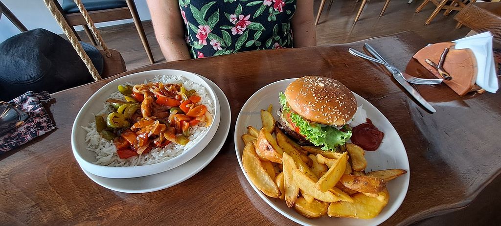 Read moreOn the first day we had burgers, they tasted very good, we also had the sweet and sour chicken with rice. The burgers were already quite filling so we didn't finish the fries that came with them. The chicken (tofu) was breaded and had a good palette between sweet and sour.