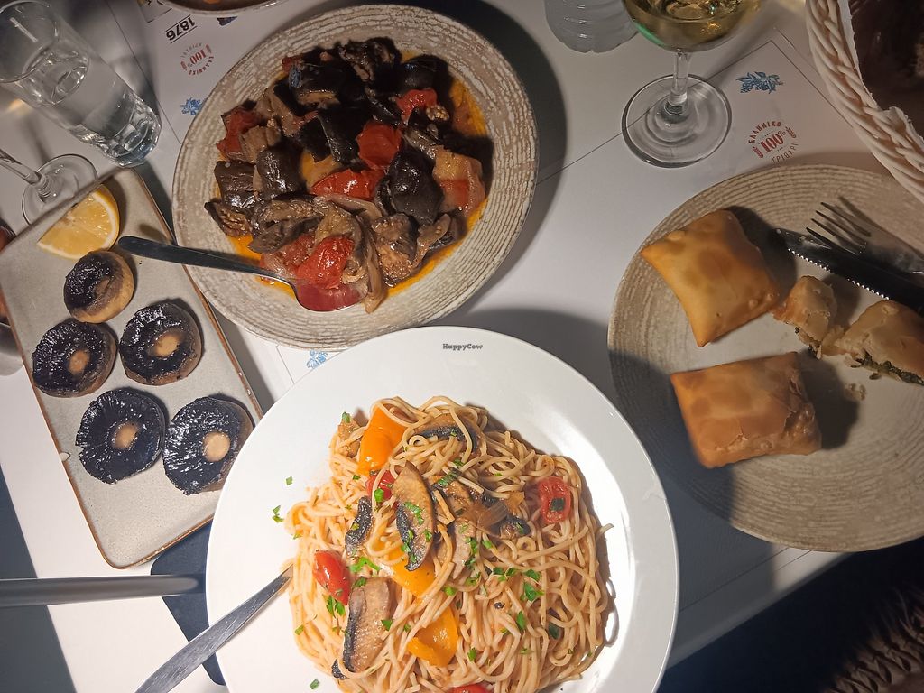 Serves meat, vegan options available. A traditional taverna and rakadiko located on the seafront promenade of Sitia. The kitchen emphasizes high-quality ingredients, exclusively using virgin organic olive oil and vegetables cultivated by the owners. The menu includes a selection of plant-based dishes, such as Briam (roasted vegetables), spaghetti with vegetables, grilled mushrooms, and vegetable pies. Reviews mention a dedicated page for vegan options is available. Open Mon-Sun 5:00pm-1:00am.