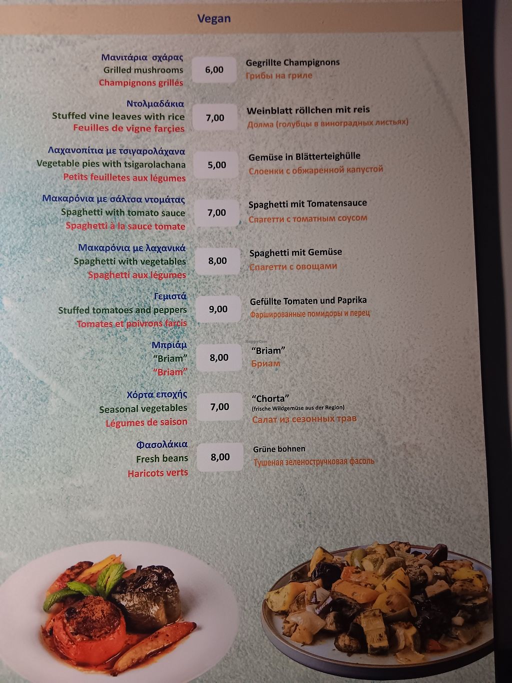 They serve a two page vegan menu among else. You can have a romantic table right next to the sea.