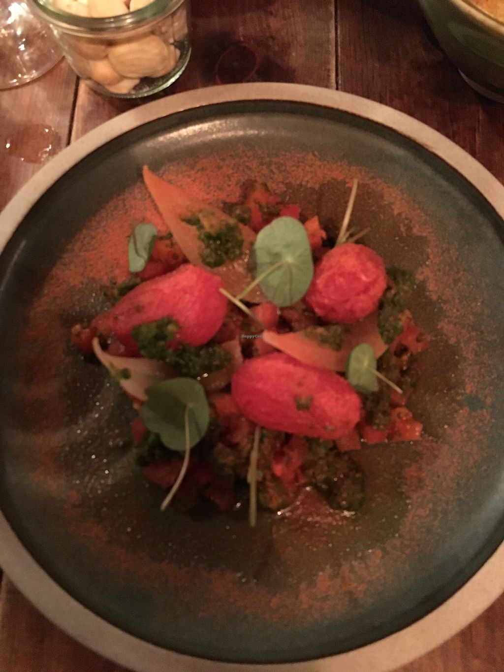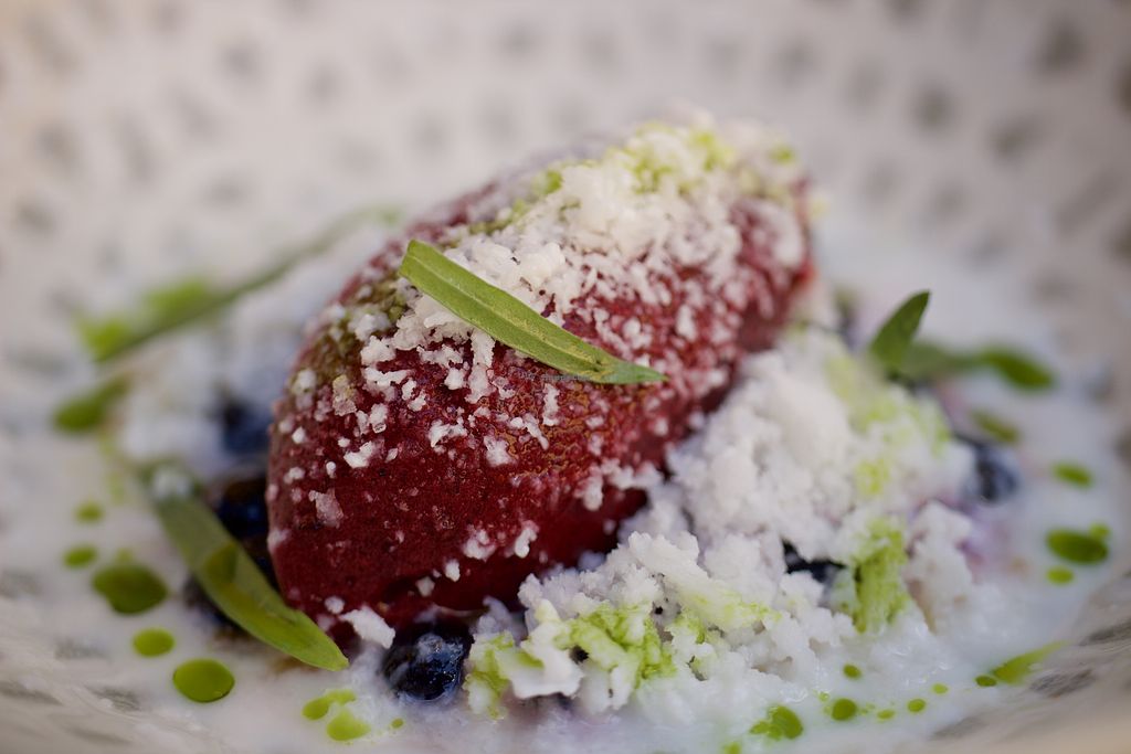 Sorbet of blackcurrant with oat milk cream, tarragon & yogurt