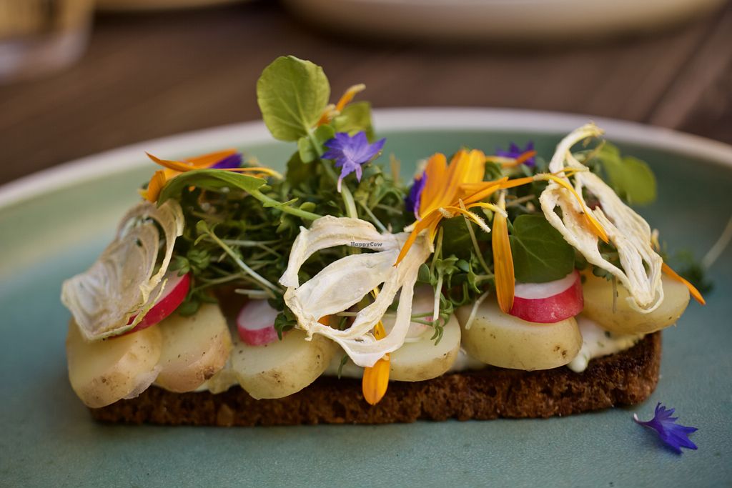 Plant-based summer food - Potato with fried onions, herb mayo & chives…