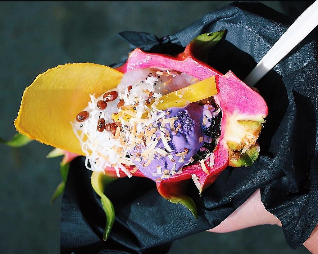 Purple Dragon with vegan salted ube ice cream, granola, tapioca pearls…