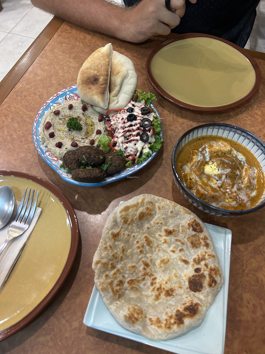 Read moreEt le plus important: beaucoup de choix gustatifs, où nous avons pris des crevettes, pita falafel et le fameux butter chicken ( tofu) avec du riz.