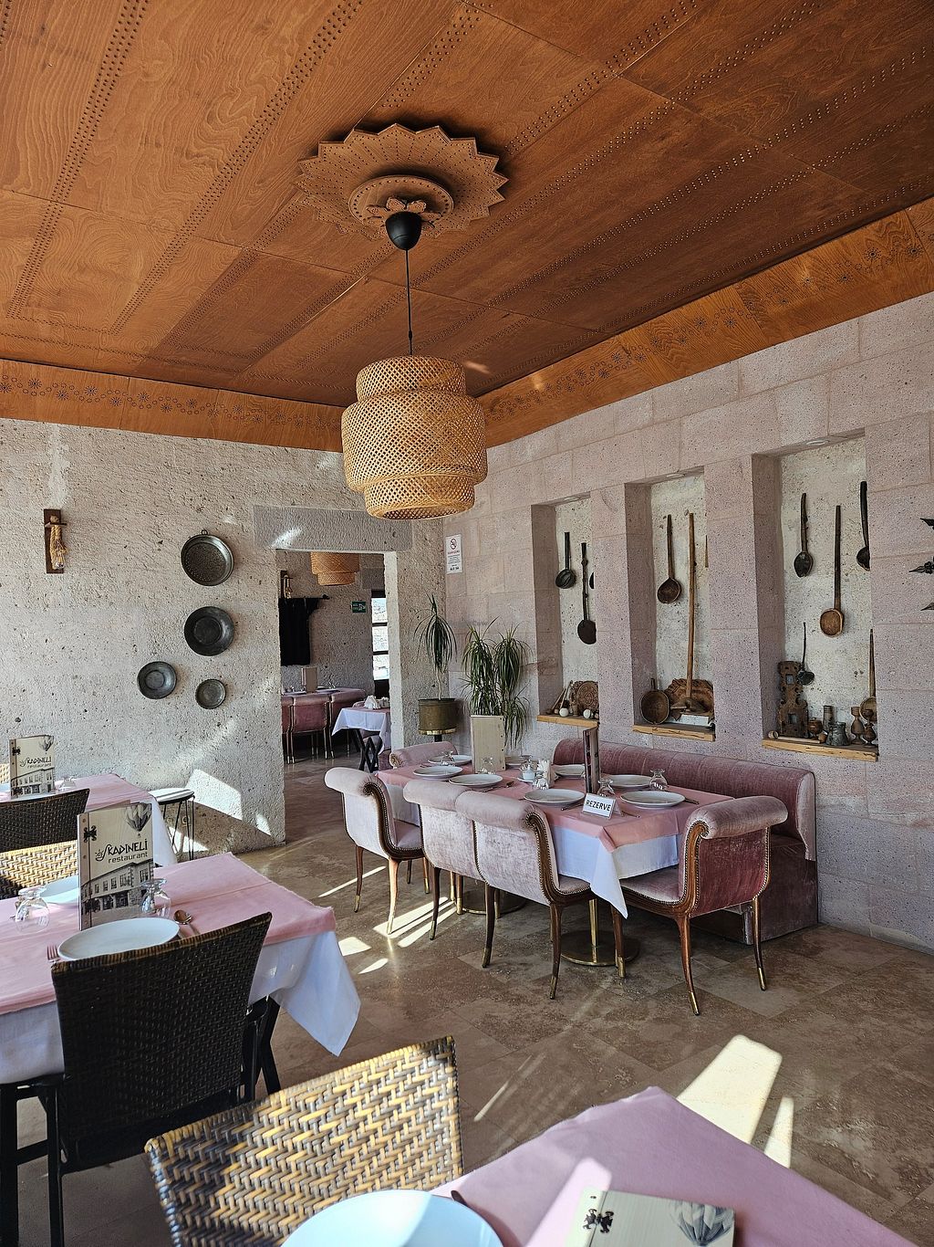 Serves meat, vegan options available. Turkish restaurant that is part of a women's cooperative. Offers a variety of veganizable dishes such as lentil kofte, beans or chickpeas with rice, stuffed vine leaves and lentil soup. Open Mon-Sun 8:00am-9:00pm.
