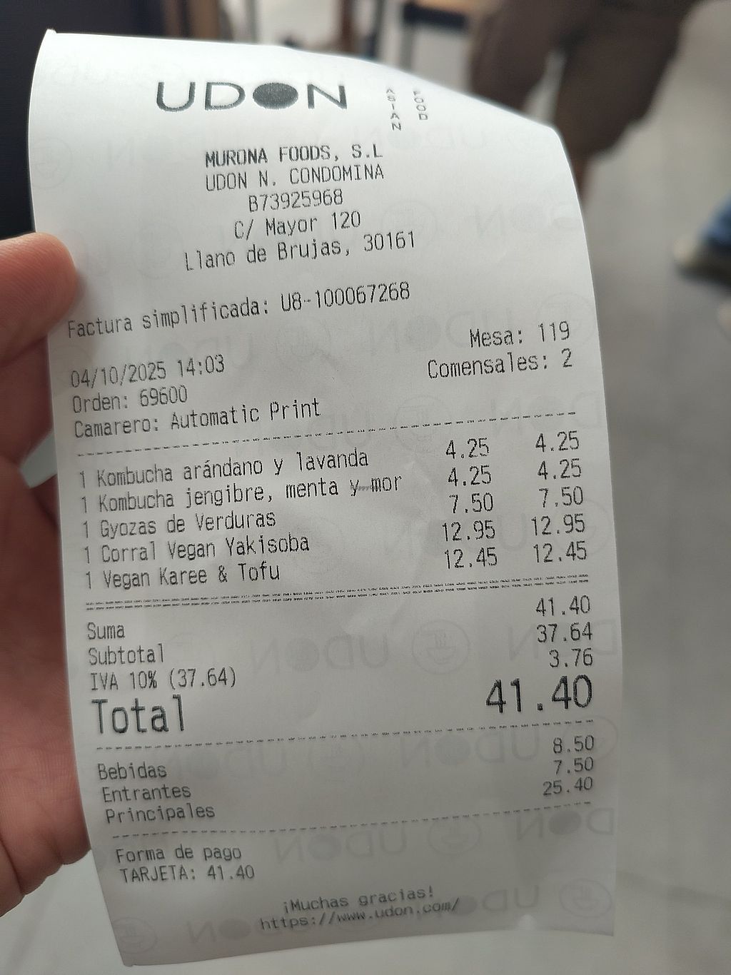 Restaurante Udon con varias opciones veganas en sus entrantes, platos principales, postres y bebidas. Tiene opción de menú y carta.