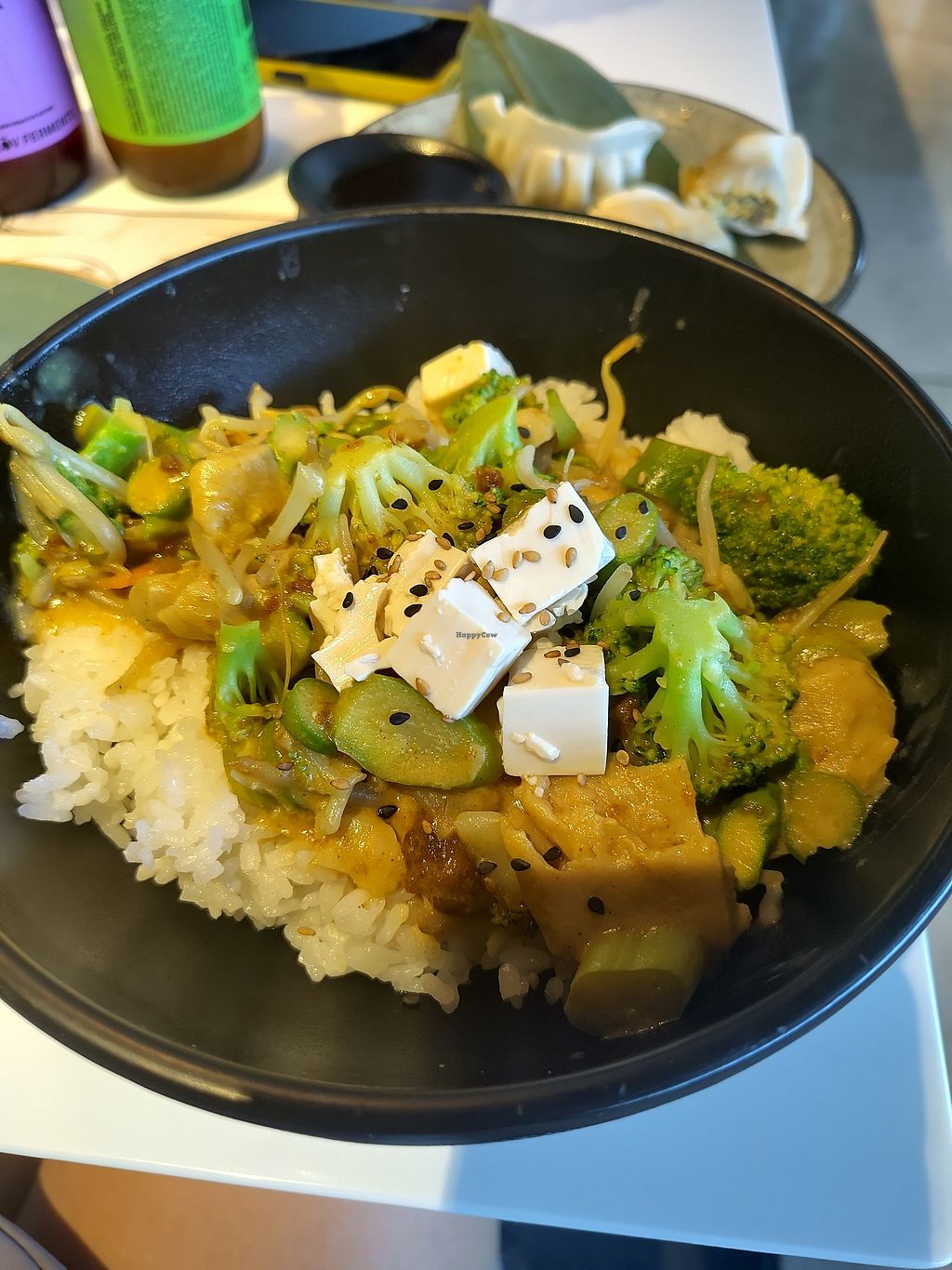 They offer a few vegan options, like rice with tofu and vegan meat, ramen, salad, seaweed, gyozas and tempura. The food is tasty, normal price and friendly staff. Worth trying it