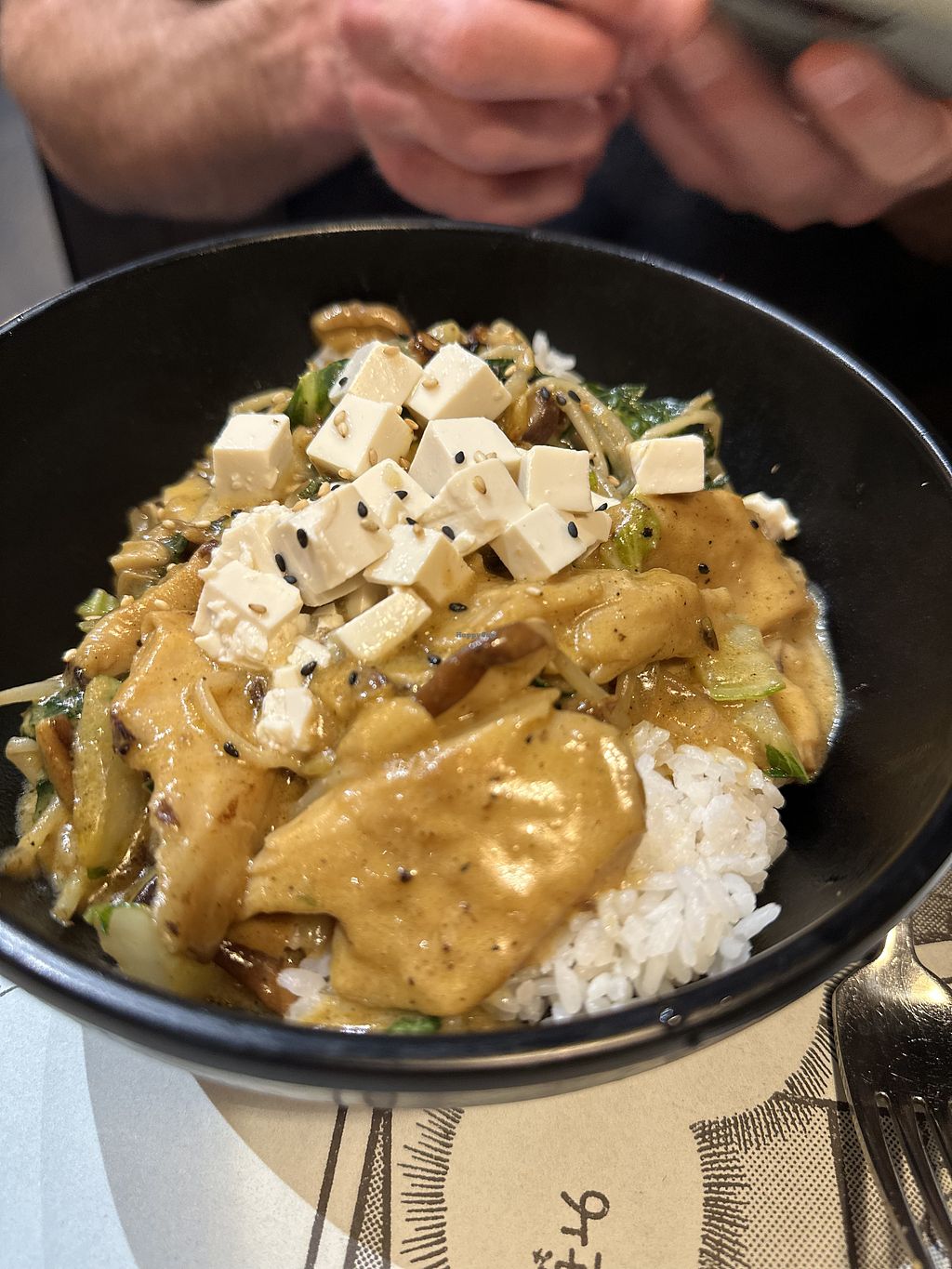 Vegan karee and tofu. Rice with vegan chicken, tofu, coconutmilk, herb…