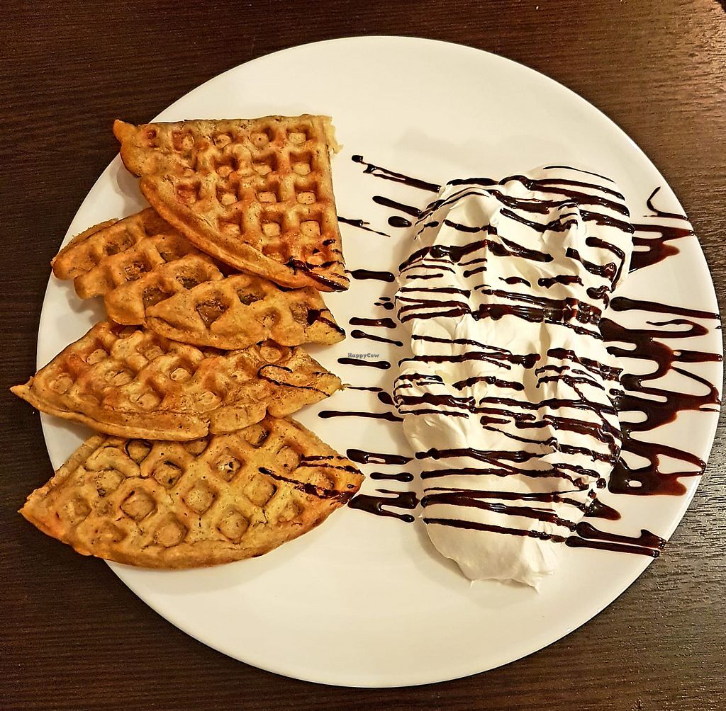 Read moreIt's not cosy inside, yet their restroom was really cool due to all the collected vegan stickers. English menu was a total mess - just 4 same pages of waffles printed and 1 of pizza which was not available.