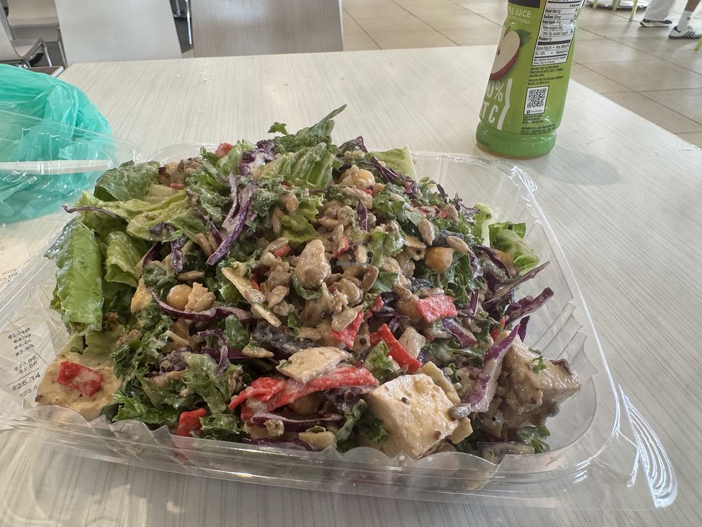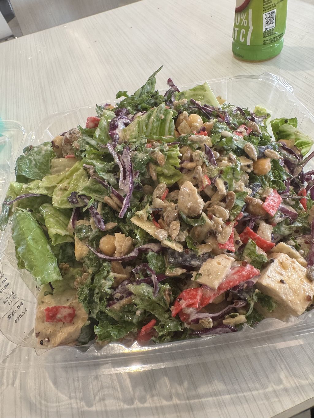 Tofu and falafel added to a vegan Caesar salad. Good stuff