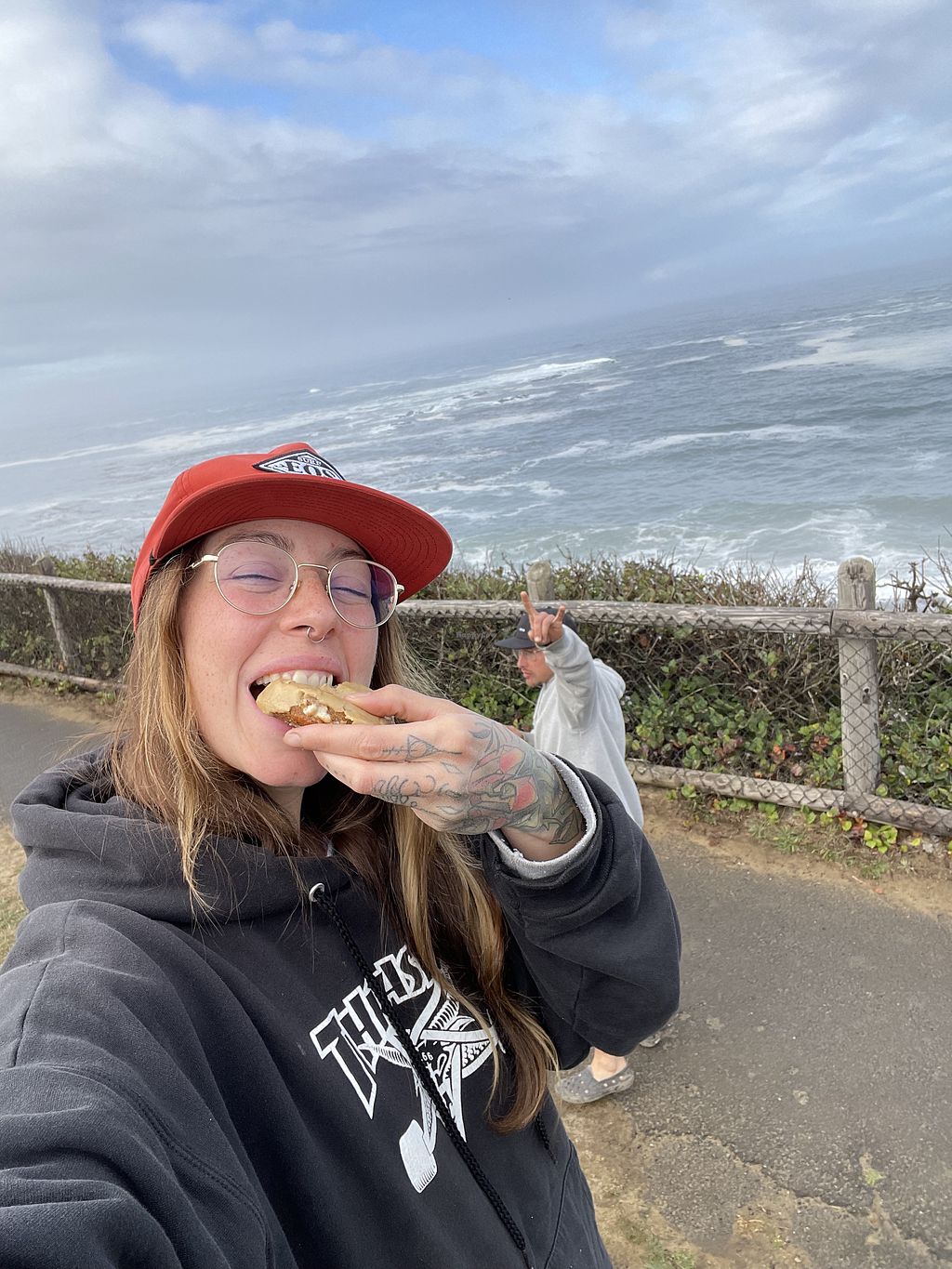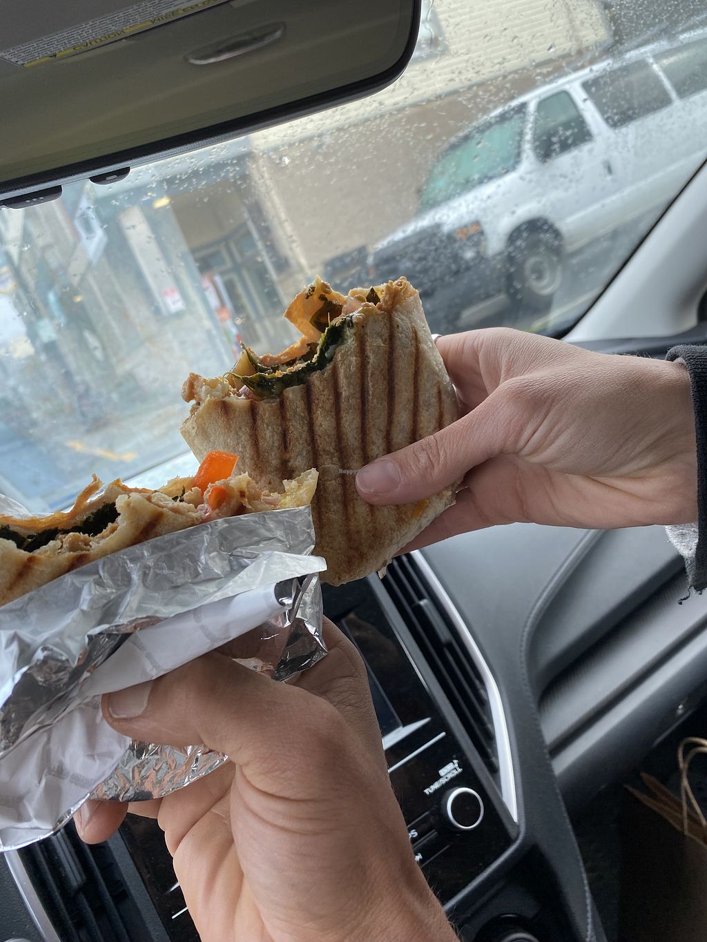 Vegan breakfast sando everything bagel (add tomato, red onions and spi…
