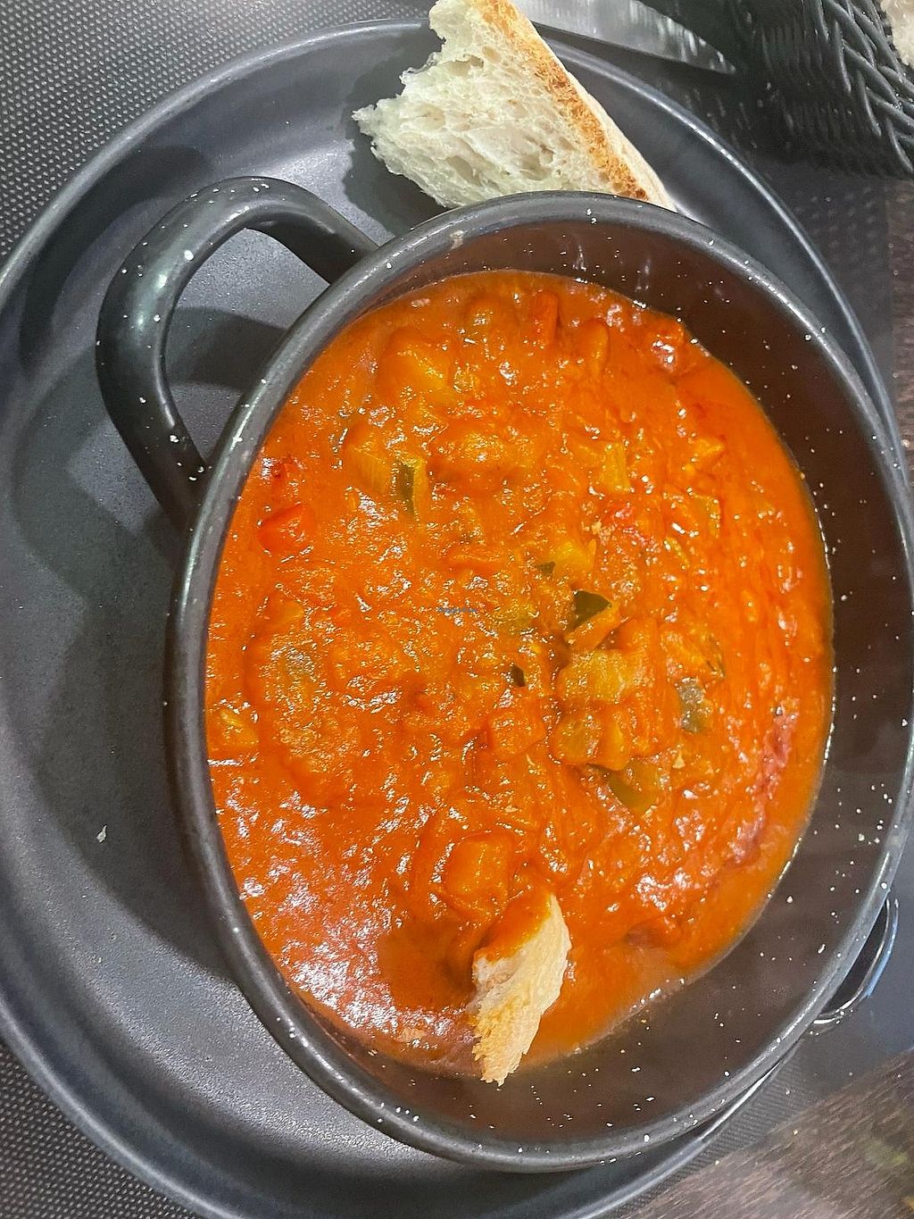 After our longest day on the camino, we were exhausted so finding this place was a blessing as it was most likely the most comforting and satisfying meal we had along the whole pilgrimage. We had two courses each, I had the ratatouille and spring rolls. Both were full of flavour really well seasoned, and tasted freshly made. The spring rolls especially were so crispy with a warm oniony filling and drizzled in a sweet syrup. Really recommend going here as it doesn’t look like a lot from the outside but the atmosphere inside is so cosy and aesthetic and the food is outstanding. Also it’s worth adding that the food and the drinks were incredibly cheap!