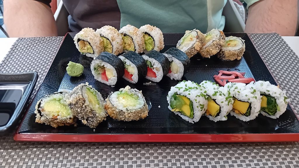 16 pcs veggie sushi, fried, fresh, sweet and savory