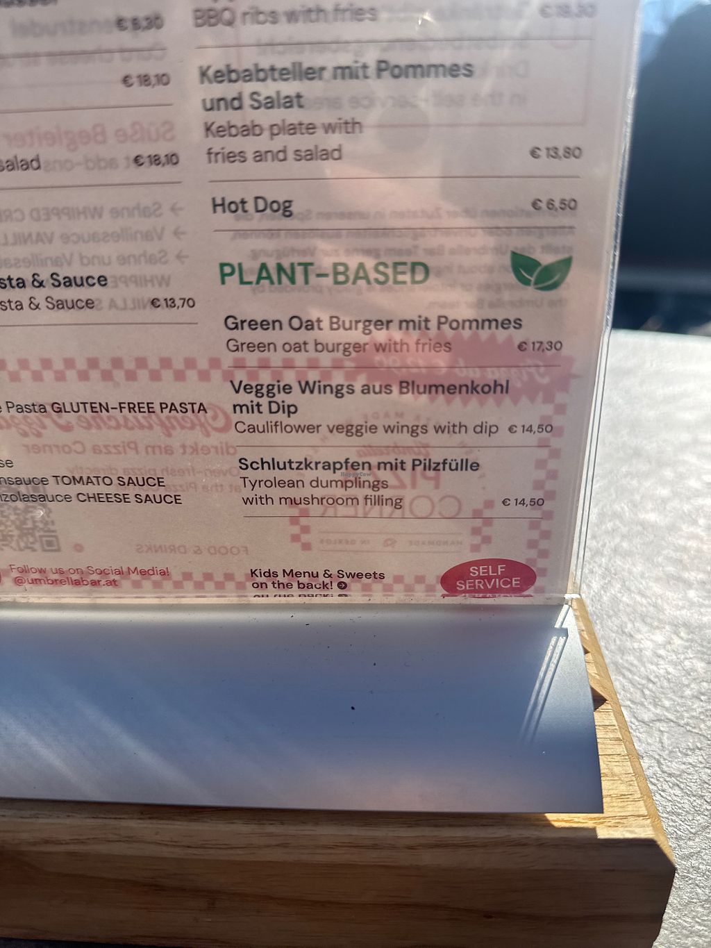 green oat burger, cauliflower wings & mushroom-filled schlutzkrapfen