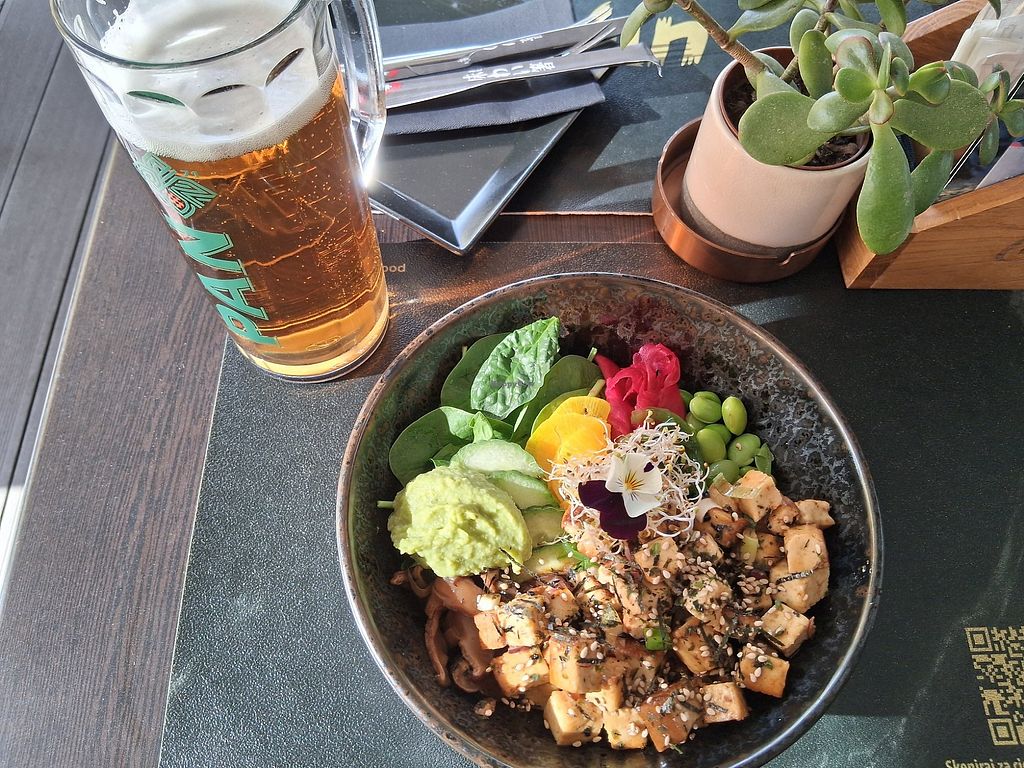 Interesting place with tasty food. They have two vegan options, Poke Bowl and Dan Dan Noodles. Coffee with plant-based milk is also available. We've tried the noodles and really enjoyed them: they were satisfying, full of umami and different flavours. However, there's no vegan starters or desserts available and I hope they'll include them in their menu in the future.