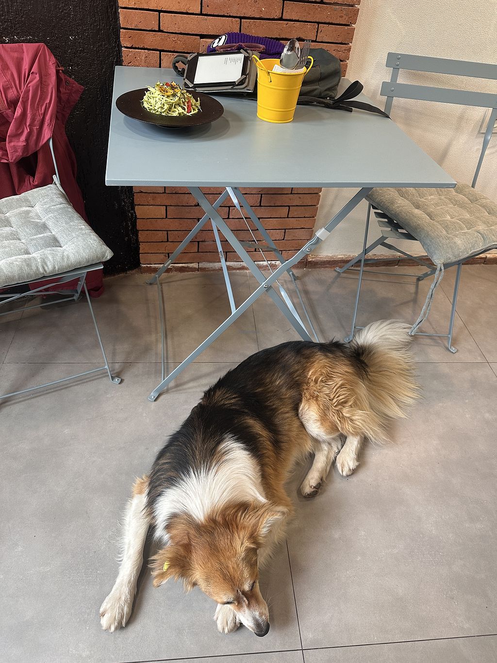 2 bowls en saffraan thee. Het chocoladeballetje was al op