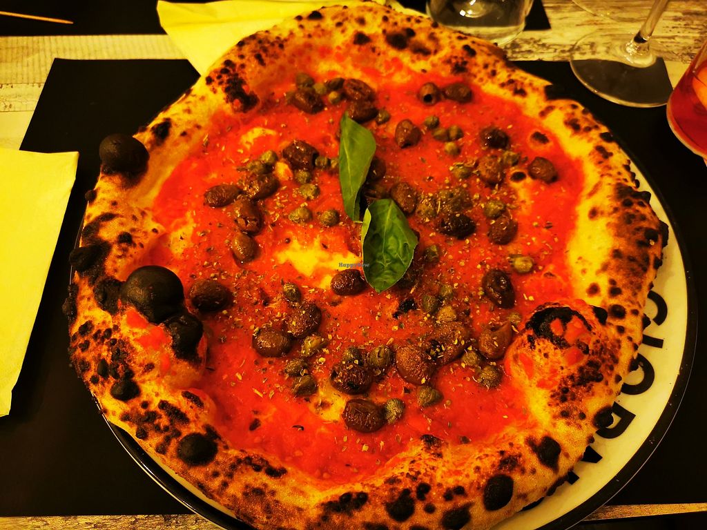 Serves meat, vegan options available. Pizzeria with some vegan items, such as potato croquettes, bruschetta, and pizza marinara. Dishes can be personalized with toppings such as artichokes, rocket, olives, and more. Open Mon 18:30-22:30, Wed-Sun 18:30-22:30. Closed Tue.