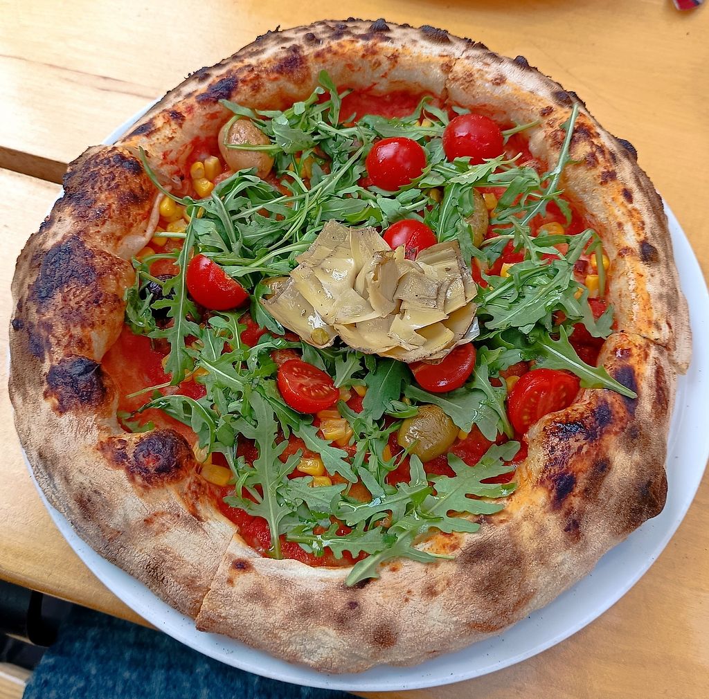 Serves meat, vegan options available. Pizzeria offering classic Neapolitan-style pizza, including vegan choices like pizza marinara and pizza giardino without parmesan. Open Mon-Sun 11:00-11:00.