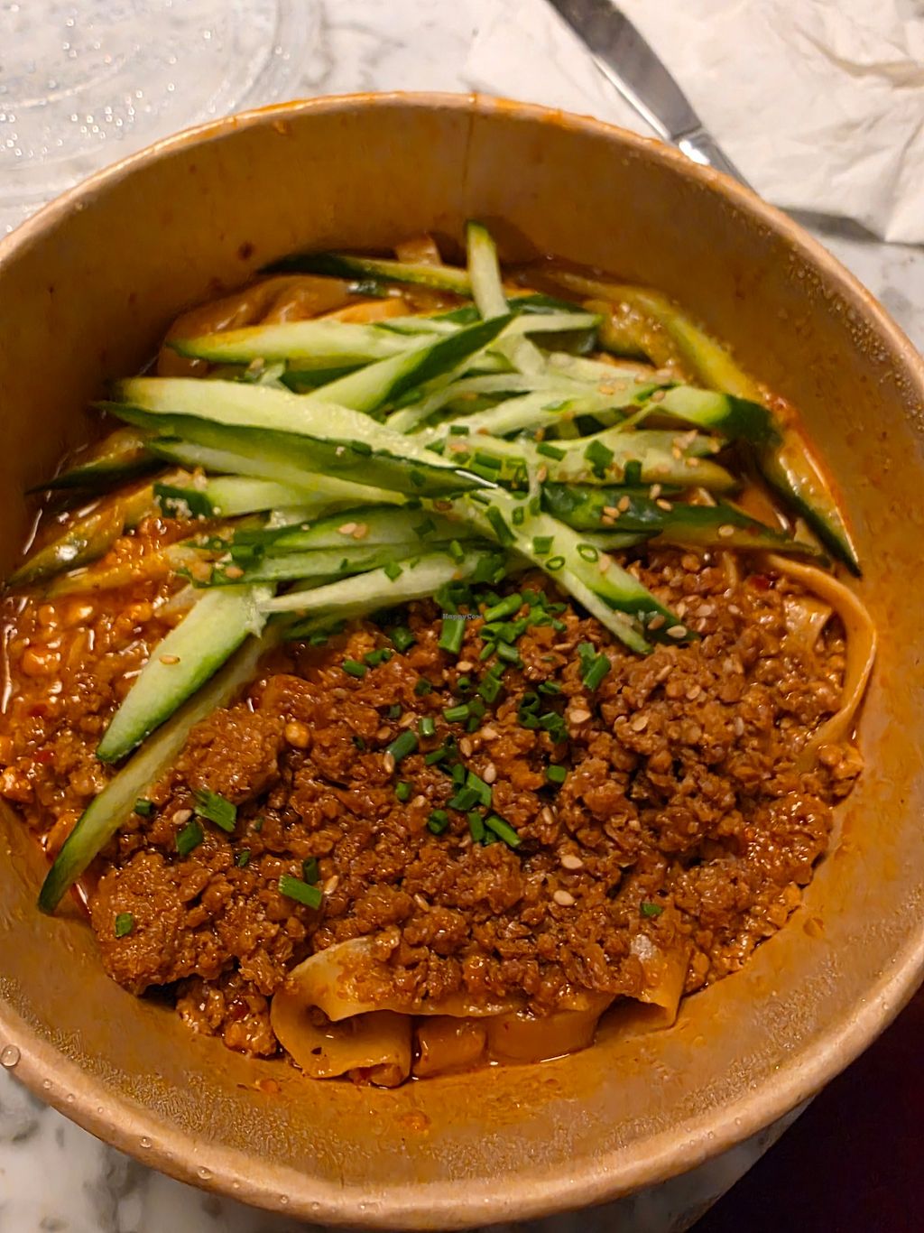 Die Dandan Nudeln sind an sich lecker, jedoch haben sie leider wenig mit den authentischen Nudeln gemeinsam die ich von Nürnberg gewohnt bin, das Hack ist hier eher weich statt knusprig. Die Gurken passen außerdem nicht wirklich zum Gericht. Zutaten wie Kohl sucht man hier vergebens.