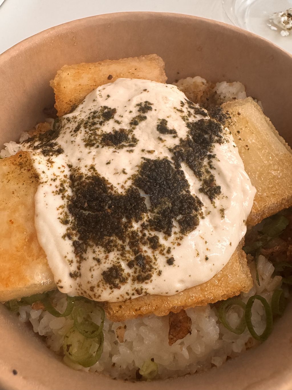 I got a delivery of the tofu crispy don and eggplant crispy. Very tasty and great portions