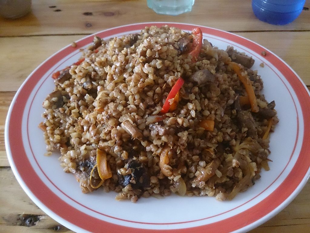 Buckwheat dish, with mushrooms and vegetables.