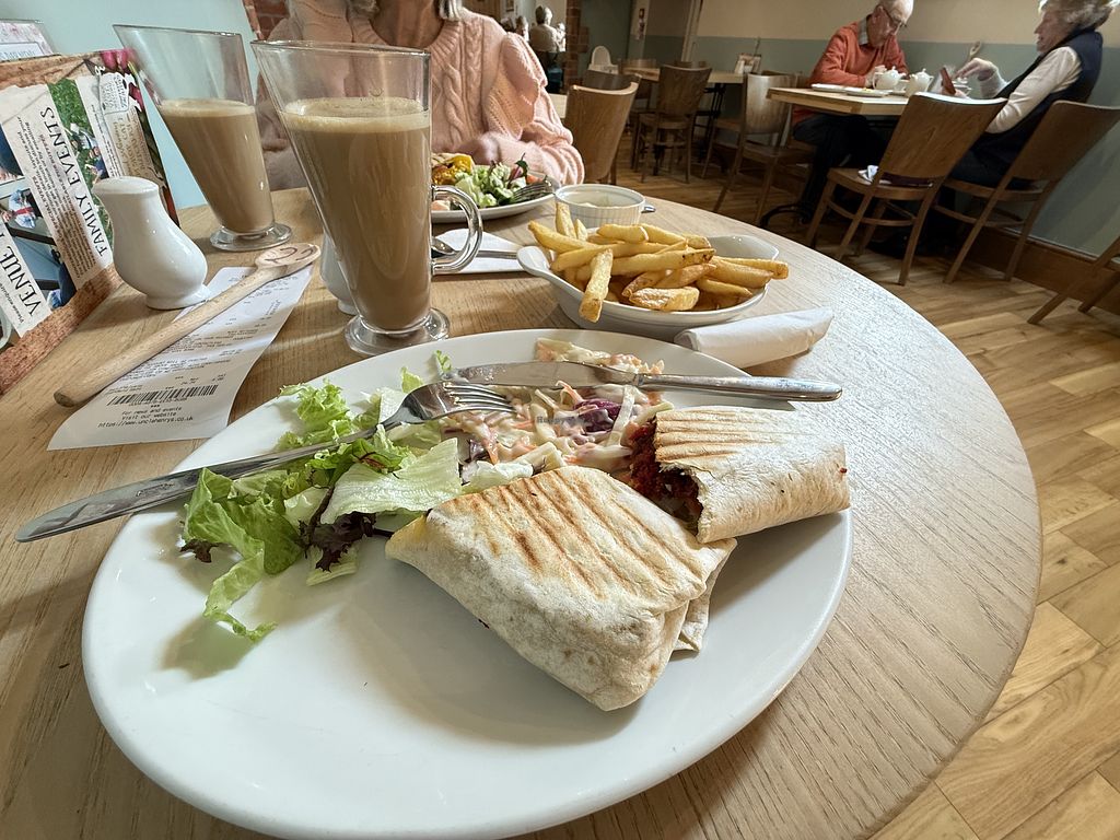 Lacto Ovo Take-out British Breakfast Non-veg Serves meat, vegan options available. Farm shop with a cafe offering a variety of clearly marked vegan choices such as falafel panini, beans on toast, veggie breakfast, lunch plate and pancake stack. Open Mon-Sun 09:00-17:00. More
