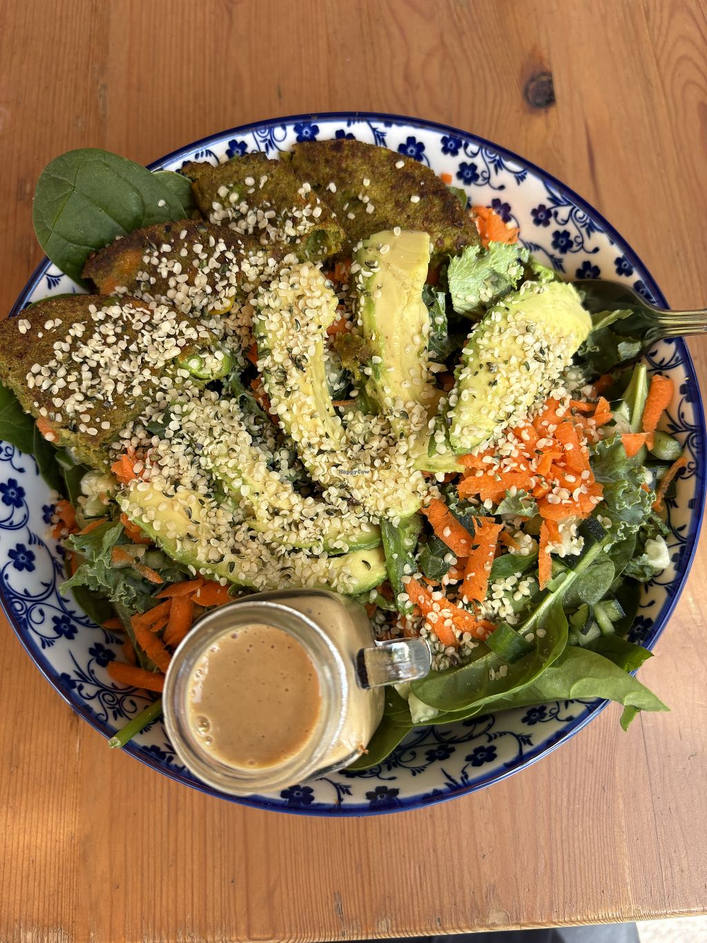 fully vegan and very delicious! great smoothies, juices, bowls, and food. also some empanadas and baked goods including a cbd chocolate chip cookie😄