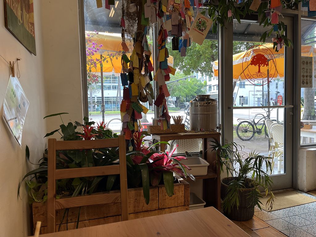 My new favorite place to eat in Miami beach. Plenty of options, also seasonal stuff and nice service. What a small, cute and cozy cafe. I think it's fully vegan cause I didn't see anything nonvegan on the menu but didn't ask...